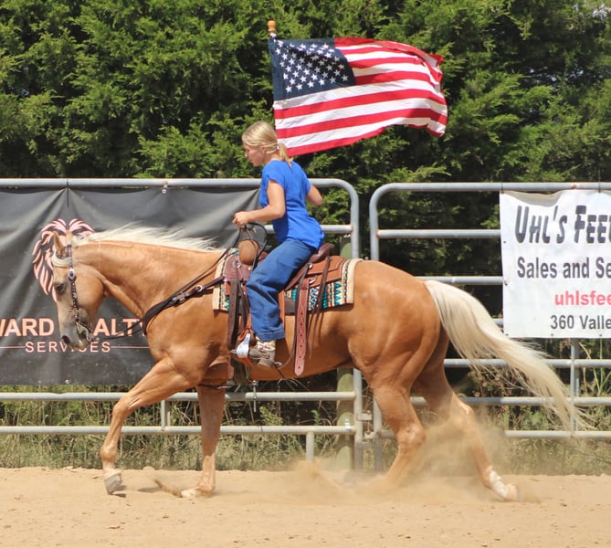♦️ 𝐭𝐡𝐞 𝐀𝐌𝐄𝐑𝐈𝐂𝐀𝐍 𝓕𝓪𝓵𝓵 𝓒𝓵𝓪𝓼𝓼𝓲𝓬 ♦️ Happening now thru MONDAY | OCTOBER 20th - Available EXCLUSIVELY on HorseBid's website! For more details and to register visit: www.Horsebid.com CONSIGNOR CONTACT: Circle C Performance Horses 812-704-6388 LOCATION: Borden, IN BREED: AQHA REGISTERED: Yes REGISTERED NAME: Gold San Lena Bar COLOR: Palomino HEIGHT: 15.1 AGE: 13 GENDER: Gelding Gold San Lena Bar – 2012 AQHA Palomino Gelding (JC Flashbac x Slip Down Lena daughter) Gibbs is the definition of versatility in the American Quarter Horse. Sired by Multiple World & National Champion JC Flashbac (by Sailing Smart) and out of a daughter of Slip Down Lena, his pedigree speaks for itself—yet it’s his proven ability to excel in nearly every setting that sets him apart. Whether it’s a ranch show, cross-country course, parade, or teaching a first-time rider to canter, Gibbs adapts seamlessly. In the past two years at our program, he has consistently been the horse we can trust for every job: beginner lessons, competitive ranch classes, reining, horsemanship, or carrying the American flag in a rodeo arena. Show & Performance Highlights: • Successfully shown in ranch riding, ranch rail, reining, western riding, trail, horsemanship, halter, hunt seat, equitation, and pleasure. • Competed in barrels, poles, and fun show events. • Proven parade and rodeo queen contest horse—traffic, sirens, and crowds do not bother him. • Suitable for both amateurs and youth riders with the training and temperament to match. Temperament & Rideability: • Exceptionally gentle, forgiving, and confidence-building for novice riders. • Talented enough to keep advanced riders challenged with spins, lead changes, and versatility across disciplines. • Reliable whether ridden daily or after several weeks off—no prep or lunging required. • Excellent trail partner: non-spooky, steady, and sure-footed. Manners & Ground Skills: • Stands tied, trailers quietly, and settles easily at new venues. • Respectful on the ground, easy for grooming, tacking, farrier, and vet care. • Seasoned traveler for shows, parades, and camping trips. While Gibbs is as close to the complete package as they come, it is worth noting he is a cribber. Gibbs is the kind of gelding that elevates any program: a proven competitor, trusted teacher, and all-around partner who embodies the versatility and heart of the Quarter Horse.