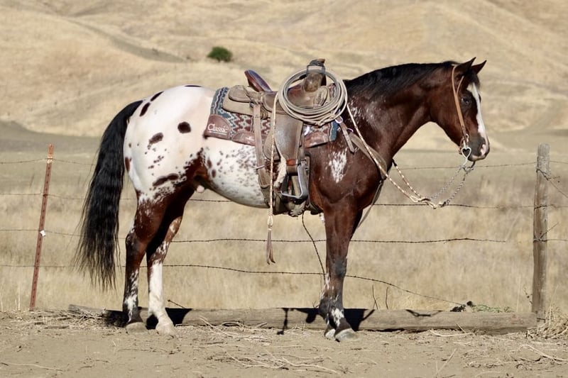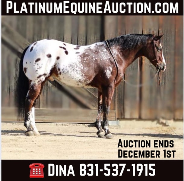 ONLINE AUCTION Place your bids at www.PlatinumEquineAuction.com Starting Bid $3500 Auction ends December 1st, 2024 Need a new saddle? Check out White Rock Saddles on our website or Facebook! Meet Bisquit the most stunning Appaloosa gelding you’ll ever lay your eyes on! Standing at a solid 15.1 hands and boasting an impressive 1200 pounds of muscle, this 11-year-old beauty is nothing short of jaw-dropping. With his rich bay coat and that lustrous black mane and tail flowing majestically behind him, he commands attention the moment you unload him from the trailer. But it’s not just his looks that set him apart; he’s a true saint under saddle! Absolutely no spook in this boy he’s as bombproof as you can get. Biscuit has been ridden by youngsters, beginners and advanced riders and is flawless. His headset is picture-perfect, while his lope feels like floating through clouds absolutely dreamy! When it comes to trotting, it’s as if you’re gliding over air; riding Bisquit is pure bliss. Reliable and safe? You bet! He is one horse you can trust with anyone he is worth his weight in gold. He takes time off well and is the same horse everyday. He rides phenomenal in the arena with his precise stop that responds to just one finger for backing up and turnarounds so accurate they’d make any trainer proud, he’s got all bases covered. He’s been there, done that on the ranch from branding to gathering cattle and shines equally bright in ranch rodeos; ranch versatility,trail companion and great family horse. Bisquit will have all eyes glued to you as you glide effortlessly across the arena atop this magnificent creature! On trails? No problem at all; he’ll calmly navigate logs, deep water crossings while pedestrians or bicycles whiz by without batting an eye. With experience tackling trail obstacles such as teeter-totters and car washes every ride becomes an exhilarating adventure! Bisquit has been ridden at state parks and on overnight camping trips. He handles group rides like a seasoned veteran will lead or fallow he will also go out alone with no issues. I cannot say enough good things about this handsome boy he’s got everything anybody could want in a horse he’s exceptional. But it’s not just about looks or talent Bisquit is pure joy to be around,patient when tied loads flawlessly good for the farrier and vet. Will pasture or stall with ease. This gem has stolen our hearts completely we know whoever welcomes Bisquit to become a part of their family will be blessed for years to come. Contact Longhorn Ranch Dina 831-537-1915 Located in Paicines, CA. ONLINE AUCTION Place your bids at www.PlatinumEquineAuction.com Starting Bid $3500 Auction ends December 1st, 2024 Need a new saddle? Check out White Rock Saddles on our website or Facebook!