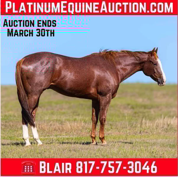 ONLINE AUCTION Place your bids at www.PlatinumEquineAuction.com Starting Bid $3500 Auction ends March 30th, 2025 Need a new saddle? Check out White Rock Saddles on our website or Facebook! A Hip Hop Music aka Boogie is a 16H chestnut/roan 2013’ AQHA gelding. We love this horse! He has so much heart and try and absolutely has one of the coolest personalities! Boogie is gentle and easy! He was started on the track and then went on to be a barrel horse. A couple years ago he was a consistent 1D horse down in southern Texas. We have had him since September and have been hauling to expos. He’s not a barrel hitter and is super smooth and easy! Boogie has been clocking anywhere from the 3/4D in his expos with no speed asked of him. We simply don’t have the time and have too many to keep him, this is the only reason he’s available! He’s fun and easy all the way around! He’d make anyone a good trail horse too! Boogie is not spooky and has zero buck, bolt or rear! He is easy to handle in all aspects and even though he’s a tall drink of water, he’s a gentle giant! He loads, leads, bathes and ties great and is good with all new sights and scenes! He’d make a great playday prospect for a teen wanting something with some speed if asked for too! Boogie is gentle and easy enough to make a lesson horse too! He is very lightly broke and will ride around soft in just a snaffle. He neck reins great, moves off leg and stops great! He will go any direction nicely! Boogie will melt right in and win your heart with his affectionate personality and he’s sure to charm you with his “easy in all aspects” nature. He will require maintenance to compete competitively and is CURRENT on all of it as of late February, 2025. He is also current on coggins, dental work and has a fresh set of shoes! More pics and videos on his website page at northtexashorsecompany.com/boogie. Please call Blair with North Texas Horse Company for more info at 817-757-3046. We are located in Weatherford, TX and can help arrange affordable shipping to anyone!! ONLINE AUCTION Place your bids at www.PlatinumEquineAuction.com Starting Bid $3500 Auction ends March 30th, 2025 Need a new saddle? Check out White Rock Saddles on our website or Facebook!