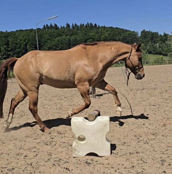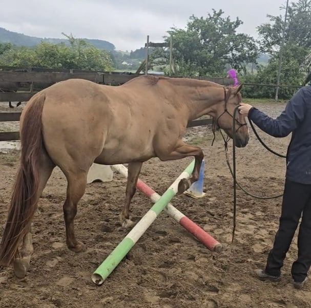 Ich suche für meinen Quarter Horse Wallach „Yankee“ ein neues, liebevolles Zuhause. Es ist kein Notverkauf und er wird auch nicht als Schulpferd verkauft. Wichtig ist mir, dass Yankee in erfahrene und einfühlsame Hände kommt. Steckbrief * Name: Yankee * Rasse: Quarter Horse * Geschlecht: Wallach * Alter: 14 Jahre * Stockmaß: ca. 1,49 m * Papiere: vorhanden, eingetragen bei der American Quarter Horse Association (AQHA) * Ausbildung: Western, Reining * Gesundheit: gesund & robust, Hufe gesund und gepflegt, hustet im Winter ab und zu * Zubehör: nach Absprache * Standort: Nähe Darmstadt (Hessen) Zu Yankee: Yankee ist ein sensibler, gutmütiger Wallach mit einer fundierten Reining-Ausbildung. Ich habe ihn in den letzten 5 Jahren überwiegend im Gelände geritten. Er ist sehr fein zu reiten, liebt Bodenarbeit, Freiarbeit und gemeinsame Zeit mit seinem Menschen. Wer sich auf ihn einlässt, bekommt ein echtes Herzenspferd, das gefallen will und durch seine feine Art beeindruckt. Auf dem Reitplatz arbeitet er brav mit, lernt gern noch dazu und macht gern Quatsch mit. Er ist kein absolutes Anfängerpferd, sondern braucht eine erfahrene, ruhige und klare Bezugsperson, die ihm Sicherheit vermittelt, da er auch eine sensible Seite hat. Im Gelände ist Yankee in Gesellschaft eines anderen Pferdes brav. Alleine empfehle ich keine Ausritte mit ihm, da er alles in der Umgebung mitbekommt und dann tendenziell schreckhaft ist. Wichtig: * Nur ernst gemeinte Anfragen bitte. * Für Proberitte werden 50 € berechnet, die bei einem Kauf selbstverständlich verrechnet werden. Preisvorstellung: 7500 € VB Wenn du dich angesprochen fühlst und ein (zweites) Pferd suchst, mit dem du Spaß haben, lernen und gemeinsam den Weg gehen kannst – dann freue ich mich auf deine Nachricht.