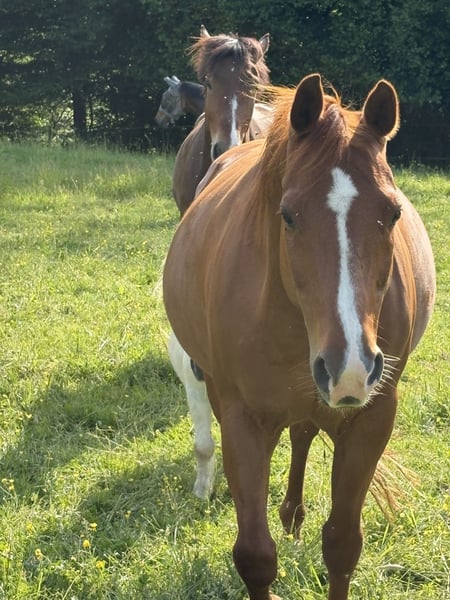 Vente exclusive aux particuliers, sans possibilité de livraison aux commerçants, établissements scolaires ou revendeurs ! Je mets en vente mon hongre Quarter de 14 ans, mesurant 1,53 m. Il est actuellement en paddock-box, connaît la pâture 24h/24 et a également été en box à aire ouverte. Tant qu'il y a de la nourriture, il est satisfait. Il a tendance à être plutôt fin et, dans son caractère, ressemble souvent plus à un arabe qu'à un quarter. Il est très bien formé en reining et aime beaucoup faire du trail. Il n'a pas participé à des compétitions de show. Ce n'est pas un cheval adapté aux enfants, aux débutants ou aux cavaliers craintifs. N'hésitez pas à me contacter en privé pour plus d'informations. Actuellement, je n'ai pas de vidéos de ses performances à cheval à vous transmettre, seulement des vidéos en longe et en liberté. Vente privée, sans garantie ni retour.