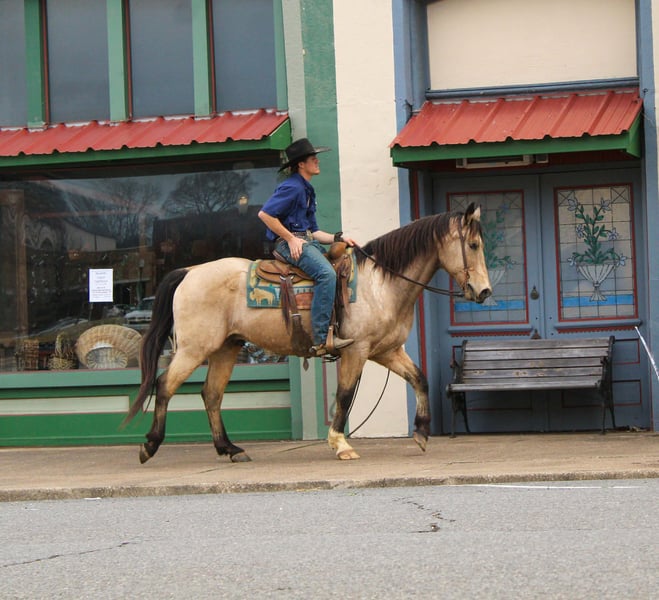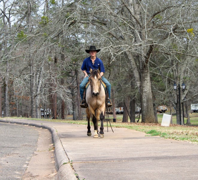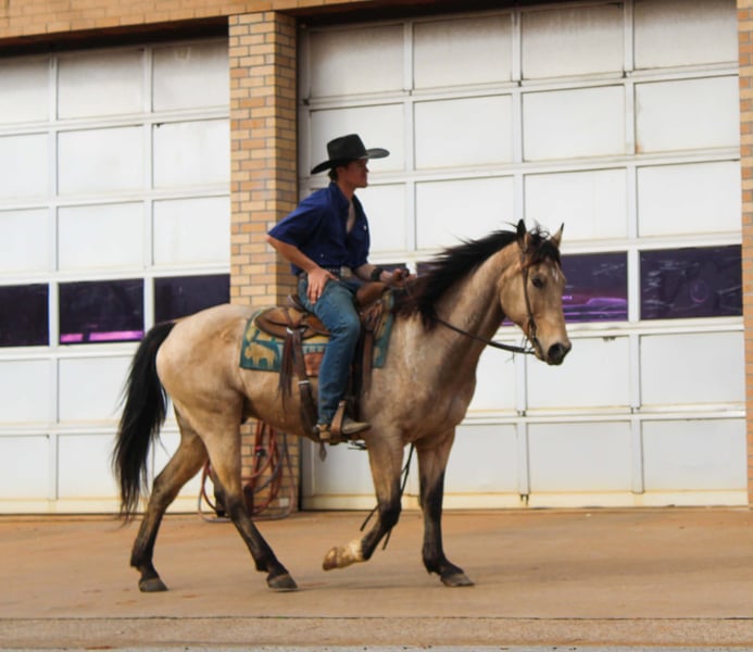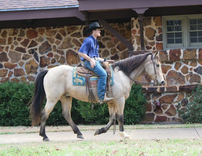 "AVAILABLE ON ONLINE HORSE AUCTION AT www DOT PlatinumEquineAuction DOT com BIDDING OPEN NOW thru SUNDAY | MARCH 8TH! *Final price will be determined on auction site* CONSIGNOR CONTACT INFO: Rileigh Dinges 979-362-0756 LOCATION: Cushing, TX King is a 15 year old buckskin gelding he stands 15 hands tall. He is a super gentle and quiet to be around. He has spent a lot of time on the ranch for all aspects of ranch work, he has been used by the whole family from the little kids to being used to rope and doctor outside. He has also been trail rode all over, he crosses the creeks, bridges, logs and goes anywhere he is asked! King has also been rode in town, he is not spooky and handles new situations very well! If you’re looking for a super nice all around gelding be sure to check him out!