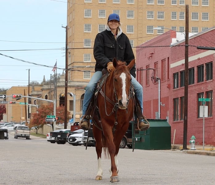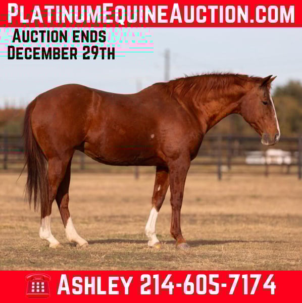 ONLINE AUCTION Place your bids at www.PlatinumEquineAuction.com Starting Bid $3500 Auction ends December 29th, 2024 Need a new saddle? Check out White Rock Saddles on our website or Facebook! Nellie sells unreserved!!! If you are looking for a super fun, handy, SMOOTH gaited, uncomplicated little starter horse, then this is your girl. Nellie has been used for ranch work and has been roped off. She would make a great affordable entry-level breakaway horse, she has a huge stop, and she’s smooth, – she is easy to keep everything in order on! Nellie has been primarily used for trail riding the last 2 years. She rides around on a nice relaxed rein, has nice gaits, and a really great handle on her. She is an easy keeper and lives outside and looks great pasture kept, she’s naturally full-bodied and a very pretty mare. We got this little mare in on trade from her previous owner who lives here locally and she was a great starter horse for her – she couldn’t afford to board multiple horses and Nellie is looking for her next rider. This mare loves to be around people and loves to have a job. She has an alert expression and is already ready for the next adventure. She’s exceptionally good in town, did tons of trail riding in urban areas and it takes a whole lot going on for her to be concerned about anything, she’s seen it all!!! Don’t miss out on this fun mare and please call anytime with any questions about Nellie 214-605-7174 Nellie is located in Weatherford, TX – one hour from Dallas / Fort Worth International Airport. He is an easy day trip or fun overnight trip to come try out, from anywhere! We are experienced knowledgeable sellers and we can help with quickly arranging affordable shipping to any buyer’s location – we have experience shipping horses worldwide – including regularly to Hawaii, Canada, Mexico, Europe, and South Africa. Go to our Facebook page Buster Ranch and check our website for buyer reviews, for more videos, additional info, etc: https://busterhorses.com/Nellie ONLINE AUCTION Place your bids at www.PlatinumEquineAuction.com Starting Bid $3500 Auction ends December 29th, 2024 Need a new saddle? Check out White Rock Saddles on our website or Facebook!