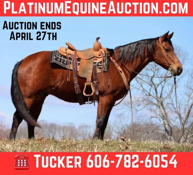 ONLINE AUCTION Place your bids at www.PlatinumEquineAuction.com Starting Bid $3500 Auction ends April 27th, 2025 Need a new saddle? Check out White Rock Saddles on our website or Facebook! Dakota is a 15 year old stout made bay gelding that is a finished cutter and will be a sure enough ranch horse. He stands 15.1 hands and will weigh 1250 lbs. He is one hand broke and super cowy. Been sorting pairs on him and he will really wack a cow. Saddles up gentle and won’t get fresh. Stays gentle and easy to catch. He’s perfect for Sunday trail riding and ready to work if needed he’s honest and ready to do a days work he’s been trail rode all over the smoky mountains and is a great gelding to be around Dakota is good for all levels of riders and rides great inside and outside the arena. Located in Cleveland, TN. Contact Tucker Burrell 606-782-6054 with any questions. ONLINE AUCTION Place your bids at www.PlatinumEquineAuction.com Starting Bid $3500 Auction ends April 27th, 2025 Need a new saddle? Check out White Rock Saddles on our website or Facebook!