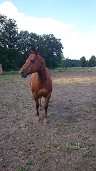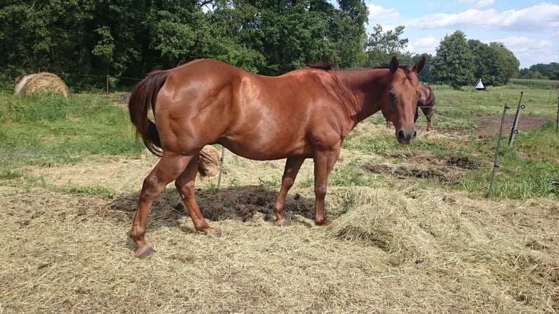 Der 18 jährige Wallach war zuletzt ca vor 10 Jahren geritten.Aufgrund meines Alter und Gesundheit muss ich ihn abgeben.Top Abstammung Reining/Cutting.War nie krank und war nie lahm.Er ist Barhufgänger mit sehr starke Hufe.Man kann ihn satteln und longieren.Er hört auf Stimme.