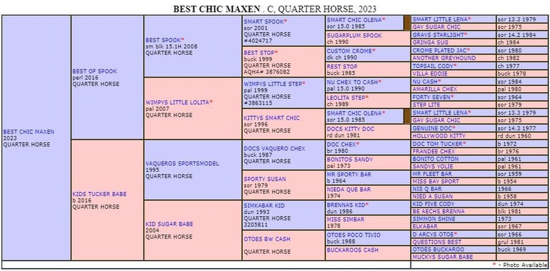 CHIC is correct gebouwd en mensgericht. Zijn vaderlijke afstamming wordt gecombineerd met snijdende, reining en werkende koepaardkwaliteiten van zijn moeders kant. Hij geniet momenteel van het leven in een groot weiland. CHEX komt in aanmerking om DQHA & Regions-Futurity te starten. Hij is door ons zorgvuldig voorbereid op zijn toekomstige leven met de methoden van Natural Horsemanship.