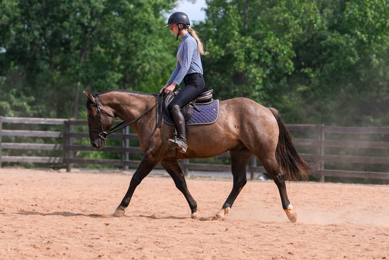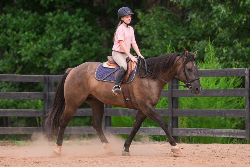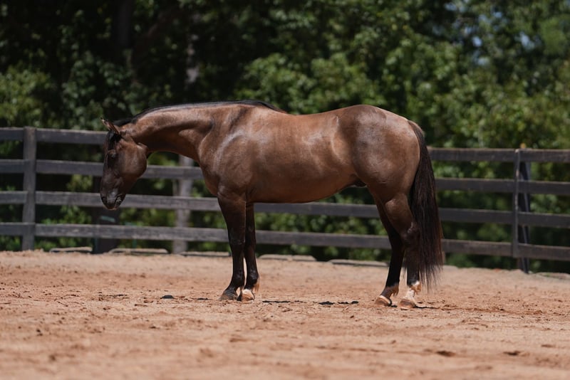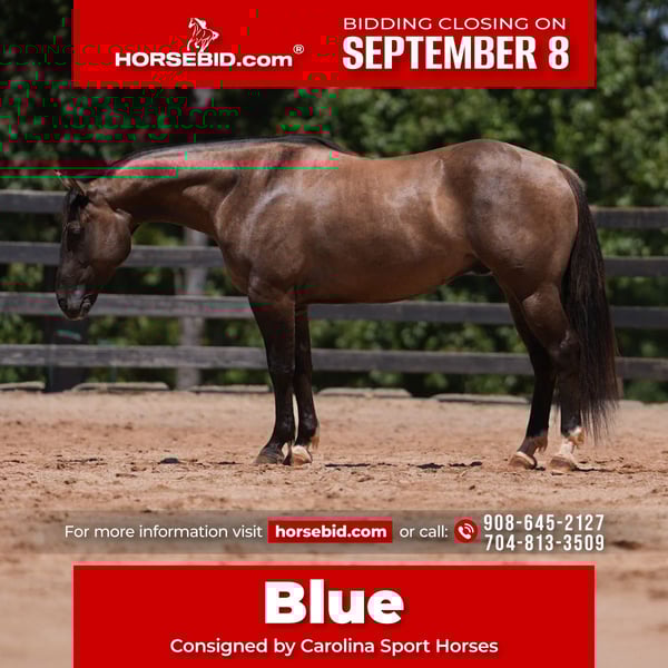 ♦️ 𝐭𝐡𝐞 𝐒𝐞𝐩𝐭𝐞𝐦𝐛𝐞𝐫 𝑺𝒆𝒍𝒆𝒄𝒕 ♦️ Happening now thru MONDAY | SEPTEMBER 8th - Available EXCLUSIVELY on HorseBid's website! For more details and to register visit: www.Horsebid.com CONSIGNOR CONTACT: Carolina Sport Horses Kieran 908-645-2127 or Caleb 704-813-3509 LOCATION: Clover, SC BREED: Quarter Horse REGISTERED: Yes REGISTERED NAME: Smokey’s Wild Gun COLOR: Grulla HEIGHT: 14.3 AGE: 4 GENDER: Gelding Smokeys Wild Gun, “Blue” is a 4 year old AQHA registered gelding standing 14.3 hands high. Blue is as stout as he is tall. He is well broke both English and western, sure footed, and smart with an old soul. Riding him, you forget his age. He is extremely well rounded with a solid foundation. Put him in western tack and do sliding stops, spins, or throw a rope off him. Put him in English tack and perfectly execute a dressage test or jump around on the cross country field. Let the kids take the reins and ride him in lessons. Or, hop on with the girls and go out on a trail ride. He’s the type that can seamlessly do any job, and do it both confidently and safely. In the ring, Blue has three easy gaits, a great stop, and will neck and direct rein. He’s soft in the bridle and is happy to ride in a frame or on a loose rein. He is very well broke under western tack and has a true one hand neck rein, works off leg pressure, has a sliding stop, and rides low and slow. Even the English riders have fun trying out his buttons! Under English tack, he puts together dressage tests with ease, has great transitions, and is easily adjustable. He’s used weekly in kids lessons, and could take up the lesson horse job today. He kicks it into low gear and plods along like an old schoolmaster. On the trails, Blue is a pro. He will ride alone or in a group, and crosses all the obstacles. He will cross water, pop over logs, and is safe in traffic. He’s been ridden on the mountainside while logging was happening 50’ away and didn’t blink an eye at the loud machines, branches snapping, and trees falling. The kids love taking him through the trail obstacle courses! He’s been sure footed and reliable everywhere we have taken him. Load him up and ride him anywhere you dream up! In the barn, Blue is friendly and gentle. He has great ground manners and enjoys being around people. He’s used to kids, dogs, and ponies running around, and doesn’t get worked up by his surroundings. Blue is an easy keeper that lives outside 24/7 in a mixed herd.