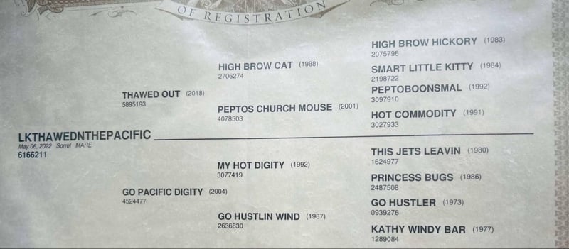ENCHÈRE EN LIGNE Placez vos enchères sur www.PlatinumEquineAuction.com Enchère de départ 3500 $ L'enchère se termine le 25 mai 2025 Besoin d'une nouvelle selle ? Découvrez White Rock Saddles sur notre site web ou Facebook ! Lkthawedthepacific alias "Hydra" est une jument AQHA bai de 14,3 mains née en 2022. C'est une très belle prospective avec tous les grands noms que vous aimez voir sur un papier. Hydra a passé 60 jours avec un entraîneur de chevaux de rein et de vache pour commencer sa formation à l'automne, et depuis, elle est dans notre écurie personnelle en tant que prospective. Son père et sa mère sont des gagnants d'argent dans le domaine du roping ET dans le domaine des barils. Elle a un talent naturel et deviendra une gagnante. Hydra a du caractère et relèvera tous les défis que vous lui lancerez. Elle se déplace bien avec un bon départ, réagit aux rênes de cou et cède aux jambes, s'arrête bien et fait toutes les choses qu'une bonne prospective de 3 ans doit faire. Elle a été montée à l'extérieur, a vu du bétail et est prête à être finalisée avec votre touche ! La seule raison pour laquelle nous l'offrons est que nous n'avons tout simplement pas le temps pour elle. C'est une trop belle prospective pour ne pas être la priorité de quelqu'un ! Hydra est une jument douce, elle n'a pas l'attitude typique des juments bais et veut vraiment impressionner. Elle excellerait dans le domaine du roping, du baril, du cutting, du tri ou en tant que cheval de ranch de travail facilement. Elle a un tempérament doux et ferait également un cheval de trail élégant avec juste un peu de temps. Elle est douce et facile à côtoyer. Elle monte, mène, prend un bain et s'attache bien. Hydra est absolument magnifique, avec une crinière de couleur paille, un pelage bai Rabicano et elle est bâtie comme une maison en briques. Elle atteindra probablement environ 15 mains+ et elle est très robuste. Quiconque finira avec cette pouliche aura une prospective extrêmement volontaire, désireuse et très bien élevée à diriger dans n'importe quelle direction ! Rendez-vous sur sa page web northtexashorsecompany.com/hydra pour plus de photos et de vidéos ! Veuillez appeler Blair de North Texas Horse Company pour plus d'infos au 817-757-3046. Nous sommes situés à Weatherford, TX et pouvons aider à organiser un transport abordable pour quiconque !! ENCHÈRE EN LIGNE Placez vos enchères sur www.PlatinumEquineAuction.com Enchère de départ 3500 $ L'enchère se termine le 25 mai 2025 Besoin d'une nouvelle selle ? Découvrez White Rock Saddles sur notre site web ou Facebook !