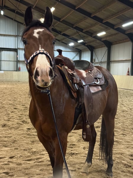 Smart Sylvester DM “Silly” is een 3 jarige ruin (2022) Sire: Smart N Sparkin Dam: Burning Dark Silly is een mooie ruin met sterke reining bloedlijnen. Hij heeft officieel AQHA papier. Zadelmak, nog niet verder opgepakt als stappen met ruiter erop. Silly is een lief, knuffelig, sociaal en gezond paard met genoeg werklust. Inmiddels 2 x meegeweest op show in de In hand onderdelen. Laadt makkelijk op de trailer (ook alleen) , kijkt niet op van verkeer met wandelen. Röntgen ggk op de benen , vaccinaties etc in orde, geen stalgebreken Gaat weg ivm teveel paarden. Prijs: €8500,- Locatie: Almkerk, Noord-Brabant
