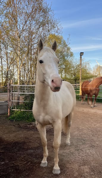 With a heavy heart, I must part ways with my 4-year-old Quarter Horse gelding due to health reasons. Snowy is currently in training and being gently introduced to the basics appropriate for his age. He already knows the groundwork basics and is being specifically prepared for riding. He shows a willing attitude to learn, is attentive, and continues to develop steadily. In terms of character, he is an open, curious, and brave gelding. In daily handling and when lunging, he presents as rather calm, relaxed, and pleasant. Once he has gained trust, he follows his handler through any new adventure. However, he still needs guidance and security and requires a clear and consistent approach from his handler. Therefore, he is not suitable as a beginner’s horse and should only be entrusted to experienced riders. Snowy has only known stall-pen management so far and appears very content and balanced in this environment. In the herd, he is a lower-ranking, very social, and compatible horse, who still enjoys playing a lot and happily, in line with his age. Health-wise, it should be noted that he had a stretch tendon injury on his hind left leg, which has healed well and can be normally loaded. Additionally, he currently has a sakoid, which is being treated. Snowy is the perfect horse for someone who enjoys further developing and training a young horse. He has the best prerequisites to become a reliable leisure horse. If you are seriously interested, I would be happy to receive a message.