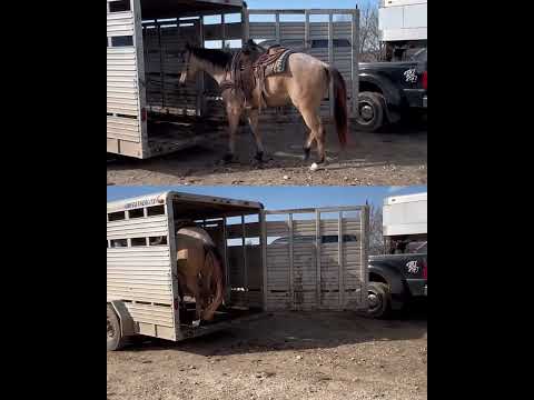 EH Famous Louie aka Dillion is a four-year-old buckskin gelding standing 15.1 hands. Don’t let his age fool you — he’s gentle, easy going, and good minded. He’s easy to handle, not nervous, and has been trail rode and used around the sale barn. He’ll pin his ears and watch a calf and is always willing to do his job. Dillion has the color, brains, and disposition everyone looks for. He’s not spooky or jumpy, just a good honest young gelding you can saddle up and enjoy. Front or back on the trail, he stays the same and is happy just walking along.