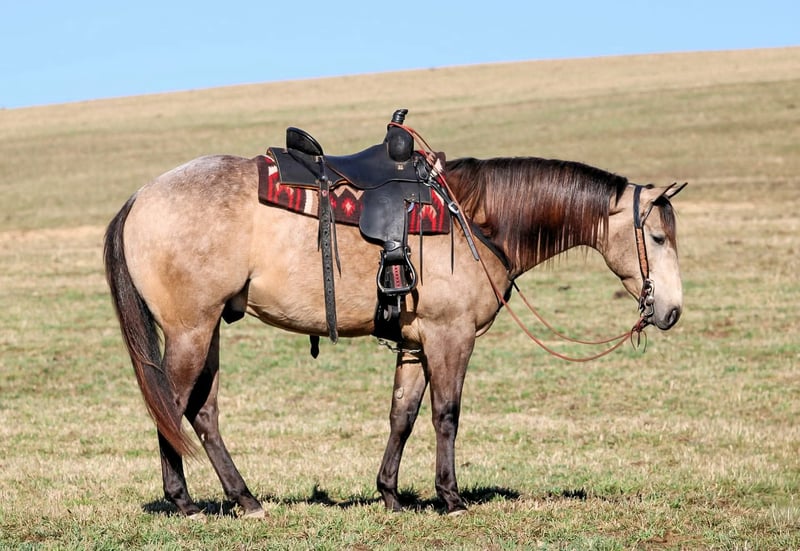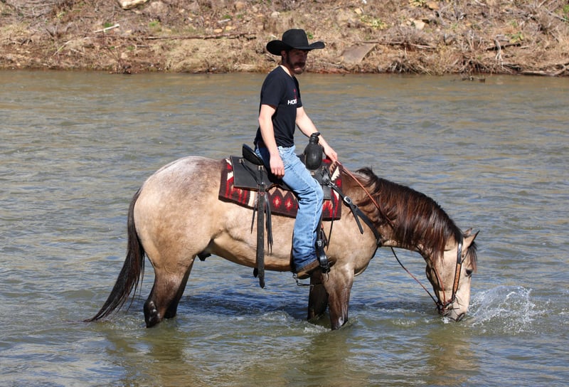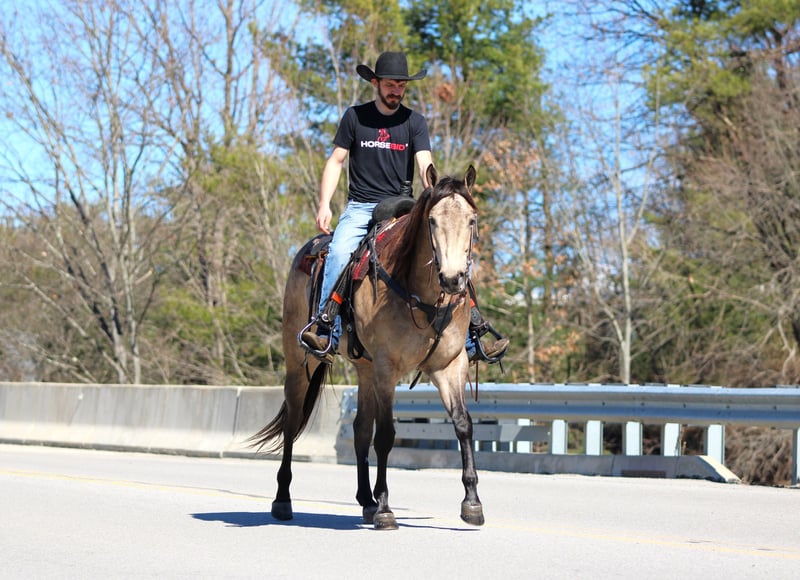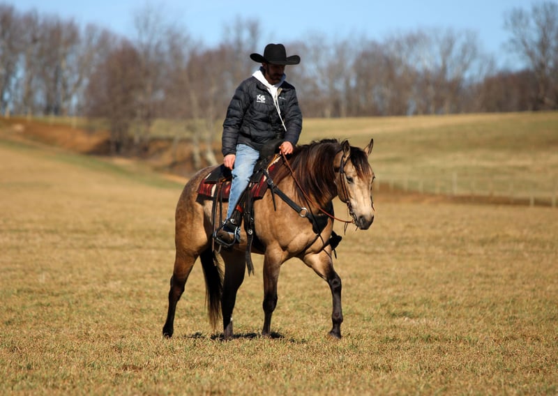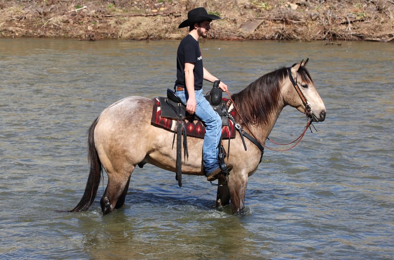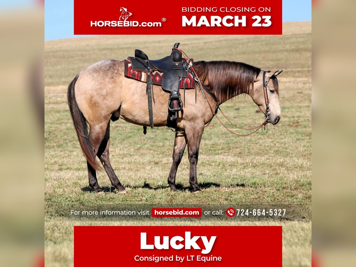 ⚜️𝓽𝓱𝓮 𝐆𝐎𝐋𝐃 𝓢𝓮𝓵𝓮𝓬𝓽⚜️ Happening now thru MONDAY | MARCH 23rd - Available EXCLUSIVELY on HorseBid's website! For more details and to register visit: www.Horsebid.com CONSIGNOR CONTACT: LT Equine 724-664-5327 LOCATION: Miola, PA BREED: AQHA REGISTERED: Yes REGISTERED NAME: Lucky Smokey COLOR: Buckskin HEIGHT: 15.3 AGE: 4 GENDER: Gelding Lucky Smokey “Lucky” – AQHA Dappled Buckskin Gelding Meet Lucky Smokey, affectionately known around the barn as Lucky. Lucky is a registered AQHA dappled buckskin gelding with a kind eye, beautiful build, and the type of personality everyone enjoys being around. He is a grandson of the well-known Two Eyed Red Buck, carrying on the look and versatility that pedigree is known for. Lucky is truly the “in your pocket” type that greets you at the gate and enjoys attention. He has a sweet, willing disposition and a trainable mind that makes him enjoyable to ride and handle. Under saddle, Lucky has a great foundation and continues to progress nicely. In the arena he walks, trots, and canters smoothly while picking up both leads with ease. He moves nicely off leg pressure, neck reins, and side passes. Lucky also has a nice start to a spin and naturally wants to carry himself correctly while setting his head and traveling in a balanced frame. Lucky has been ridden both English and Western, showing his versatility and willingness to adapt. He has been started over ground poles and cross rails and shows promise for riders who may want to continue him in English disciplines as well. Outside of the arena, Lucky has many trail miles under his belt. He enjoys getting out on the trail and is always willing to go wherever he is asked. He has been exposed to a variety of environments and handles new situations with a willing attitude. Lucky has no known vices or bad habits. He is eager to please, enjoys having a job, and has the kind of personality that makes him a barn favorite. Whether you are looking for a trail partner, ranch prospect, or a horse to take further in the performance arena, Lucky has the foundation and potential to go in many directions with his new owner. ✔ Recent vet exam ✔ Current Coggins ✔ Fresh set of four shoes Lucky is ready to meet his next partner and continue his journey.