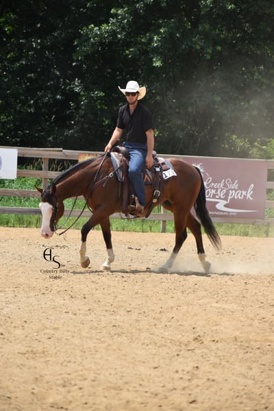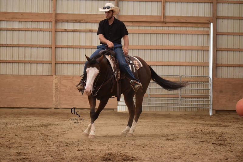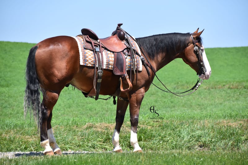 🍂 𝓐𝓾𝓽𝓾𝓶𝓷 𝑨𝑳𝑳 𝑺𝑻𝑨𝑹 𝑳𝑰𝑵𝑬𝑼𝑷 🍂 Happening now thru MONDAY | OCTOBER 6th - Available EXCLUSIVELY on HorseBid's website! For more details and to register visit: www.Horsebid.com CONSIGNOR CONTACT: Country Hills Stable / Eddie Miller 330-365-6443 LOCATION: Baltic OH BREED: AQHA REGISTERED: Yes REGISTERED NAME: Take Out The Gunman COLOR: Bay HEIGHT: 14.3 AGE: 4 GENDER: Gelding Bourbon is a one of a kind, sweet, sweet gelding! He has been a gem to work with and has been a pleasure to have in my program. Bourbon has many miles of trail experience, including several wagon train trips with large groups of horses and was a true gentleman! He is safe in the traffic, on busy roads and riding thru town. He is used to balls, tarps and bull whips. Bourbon has been ridden by beginners and is very trustworthy. He willingly comes up to you in pasture and is happy to greet everyone who enters the barn. Bourbon patiently stands to tack, bathe, clip and shoe. He has been ridden a lot in the arena and moves gracefully thru all gaits, whether in English or Western tack. He will side pass to the mounting block for ease of mounting. Bourbon will neck rein; he jumps, pivots and stops nicely. He has been showed in Ranch riding and brought home some ribbons, so whether you're looking for a horse to pleasure ride on weekends, take him to the show ring or for your kids to tag along, Bourbon will be there for you, and he will look HANDSOME doing it!