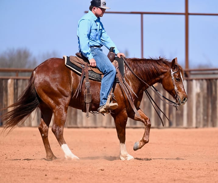 𝐍𝐀𝐓𝐄 𝐁𝐀𝐋𝐋𝐄𝐑𝐈𝐍𝐎 𝐇𝐎𝐑𝐒𝐄 𝐂𝐎'𝐬 ★ ℝ𝕀𝔸𝕋𝔸 𝔹𝕌ℂ𝕂𝕃𝔼 ★ 𝑺𝒉𝒐𝒘𝒄𝒂𝒔𝒆 Happening now thru SATURDAY | FEBRUARY 28th - Available EXCLUSIVELY on HorseBid's website! For more details and to register visit: www.Horsebid.com CONSIGNOR CONTACT: Nate Ballerino Horse Con 254-716-9588 LOCATION: Waco, TX BREED: Quarter Horse REGISTERED: Yes REGISTERED NAME: Mysterish COLOR: Sorrel HEIGHT: 14.3 AGE: 5 GENDER: Gelding Well-bred gelding by Dual Reyish, originally started as a cutter and packed with natural cow, quick on his feet and has a cool move on a cow. He’s been used extensively outside — doctoring cattle, sorting, and gathering big pastures. Knows a day’s work and handles cattle with confidence. Lightly started in the breakaway and ready to go on with in any direction. Eligible for Valley Equine Super Stallion Incentive, Breeders Invitational, NCHA Super Stakes, PCCHA, NRCHA Cow Horse Incentive, Gold Buckle Futurities, Riata Buckle, Royal Crown Roping, NRBC, Chrome Cash Please call Nate Ballerino at 254-716-9588 with any questions. National Wide Shipping can be arranged.