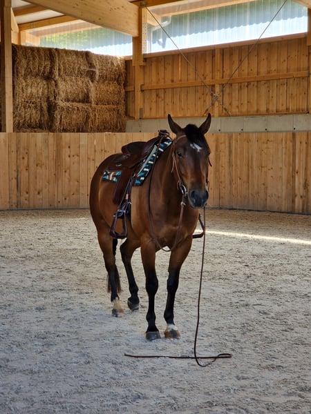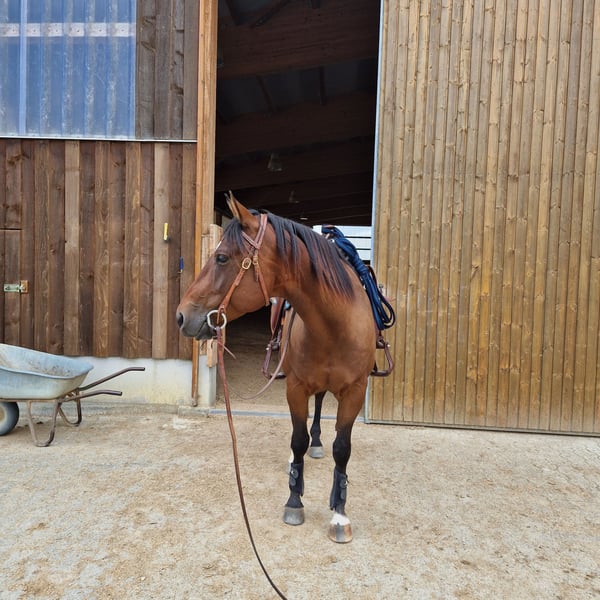 Verkaufe American Quarter Horse Wallach – Perfekt für Freizeit und Hobby: ********************************************************************************************* Wegen Aufgabe des Reitsports biete hier hier meinen selbst gezogenen American Quarter Horse Wallach zum Verkauf an. Geboren am 31.03.2020, ist er ein zuverlässiger und freundlicher dem Menschen zugewandtes Pferd. Im Umgang mit Artgenossen zeigt er sich ebenfalls als unkompliziert und verträglich. Er weist keine Unarten auf. - Rasse: American Quarter Horse (Certificate Of Registration der AQHA + DQHA Equidenpass inkl. Zuchtbescheinigung) - 6-Panel: N/N - Geschlecht: Wallach - Geburtsjahr: 2020 - Farbe: Braun - Stockmaß: ca. 152 cm - Einsatzgebiet: Freizeit Der Wallach ist ruhig und unkompliziert im Umgang, er kennt die üblichen Alltagssituationen, sowie lässt er sich gut Verladen. Er ist gesund, gepflegt und wird regelmäßig alle 7-8 Wochen dem Hufschmied vorgestellt. Regelmäßige Entwurmungen/Impfungen sind selbstverständlich. Der Wallach kennt Boxenhaltung als auch Gruppenhaltung. Aktuell steht er in einer Paddock-Box in Kombination mit Schlechtwetterauslauf in Gruppenhaltung (siehe Video). Ideal für Reiter, die einen verlässlichen Partner suchen für Freizeit und Hobby. Bei entsprechender Förderung sicher auch für den Turniersport geeignet. Platz vor Preis! Bei Interesse oder weiteren Fragen stehe ich gerne zur Verfügung. juergen.hoelldampf@outlook.com +49(0)162/8073994