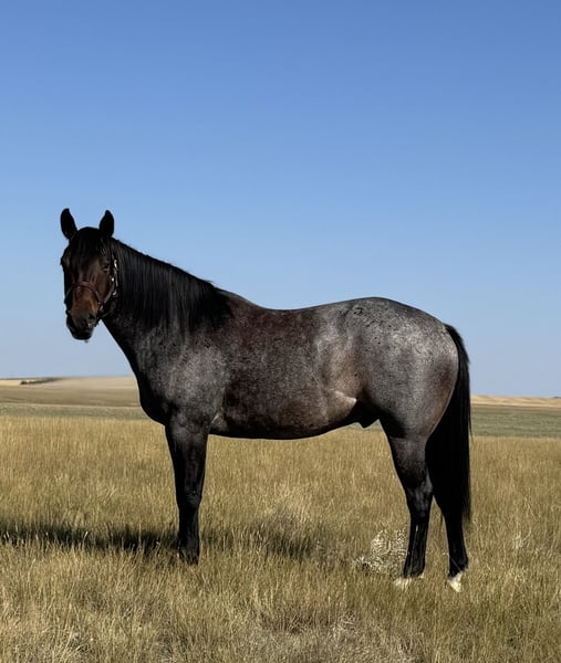 🍂 𝓐𝓾𝓽𝓾𝓶𝓷 𝑨𝑳𝑳 𝑺𝑻𝑨𝑹 𝑳𝑰𝑵𝑬𝑼𝑷 🍂 Happening now thru MONDAY | OCTOBER 6th - Available EXCLUSIVELY on HorseBid's website! For more details and to register visit: www.Horsebid.com CONSIGNOR CONTACT: Jeremy James 406-781-2227 LOCATION: Power, MT BREED: Quarter horse REGISTERED: Yes REGISTERED NAME: ROLLING POCO ROCCO COLOR: Bay roan HEIGHT: 15 AGE: 4 GENDER: Gelding ROLLING POCO ROCCO Meet Rocco. He is a 2021 AQHA gelding standing at 15 hands. This stout flashy fella is calm minded and very patient. He is perfect for beginners, fun for intermediate riders and solid for advanced riders. Rocco is ranch raised and has been around cattle his whole life. He moves cattle or horses on a regular basis. He knows his job when he gets into a branding pen, his presence is steady in the stressful environment. He does well for young learners as he is very patient. Not much upsets Rocco. He makes a great horse for lessons with the right balance of whoa and go if you are unsure of your riding abilities. He is great at boosting the confidence of any rider. Rocco does not hesitate with any challenge given to him. He crosses water easily and adapts to any terrain in front of him. You can open and close gates off of him, side pass with ease and he has perfect manners on the ground. Rocco is easy to catch, very gentle, stands quiet for saddling, mounting and he is excellent for the farrier. He is a gentleman to load, unload backing out and haul in the trailer. He doesn’t bat an eye having to work on his own, and he works well around other horses. Rocco is eager to please and has an honest heart. He will make a fantastic addition to any family! Rocco is located in Power, Montana - we are happy to help get you in contact with transportation for across the country. For more information call Melissa James at 406-781-2227