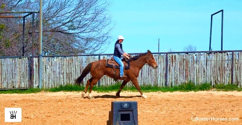 "AVAILABLE ON ONLINE HORSE AUCTION AT www DOT PlatinumEquineAuction DOT com BIDDING OPEN NOW thru SUNDAY | MARCH 8TH! *Final price will be determined on auction site* CONSIGNOR CONTACT INFO: Buster Horses 214-605-7174 LOCATION: Weatherford, TX Seven is a really cute five-year-old bay gelding with three white socks, a blaze, and a unique birthmark on his right hip that makes him easy to recognize. He is extremely kind-natured and currently one of our riders’ absolute favorites to swing a leg over. Seven gets better with every ride and truly enjoys one-on-one attention, bonding closely with his rider. He was recently used on Paramount sets as a background horse and handled the exposure well. He is quiet-minded but still young, so he does best with a rider who will give him a job and continue progressing him. Seven has a great forward stride, big bone, and the athletic ability to go multiple directions, whether that’s barrels, roping, ranch work! He has a nice stop, an easy way of going, and now rides relaxed on a loose rein and in a frame. He is confident out on the trails alone and just as happy in a group, covering ground with ease and enjoying having something to do. On the ground, he is easy to catch, lead, load, and haul, stands relaxed to saddle and bridle, and stands flat-footed for mounting and dismounting. He has no vices or bad habits, is easy to bathe, and has been great for the vet, farrier, and dentist. He just received a fresh set of shoes, was recently power-pack wormed, and saw the dentist last week - so he is current and ready to go. If you are looking for an affordable spring project with all the hard work already done and just the right age to polish and finish your way, don’t overlook Seven. We will continue riding him right up to sale day and, we will post updated video footage. Call Ashley with Buster Horses 214-605-7174 MORE pictures and videos at: BusterHorses.com/Seven Located in Weatherford, TX ~ West of Fort Worth, TX 1 hour from Dallas / Fort Worth International airport …and we can help with quickly arranging affordable shipping to any buyer’s location ~ He is an easy day trip, or fun overnight trip to come and try out, from anywhere! We are experienced, knowledgeable sellers, and we can help with quickly arranging affordable shipping to any buyer’s location – we have experience shipping worldwide – including regularly to Hawaii, Canada, Mexico, Europe, and South Africa.