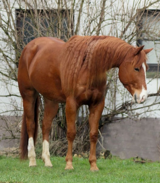 Crush jest pod siodłem od maja 2024 roku i pokazuje mnóstwo talentu oraz wspaniałe ruchy. Chętnie współpracuje i jest zawsze dobrze do ułożenia. Ma doskonale zbalansowany, płaski galop i już teraz wykazuje duży potencjał do spinów i zatrzymań. Opłacone Euro i NRHA Niemcy.