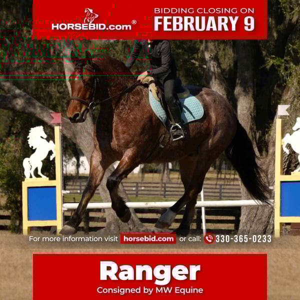 ❤️🔥𝑩𝒆 𝑴𝒊𝒏𝒆 𝐒𝐄𝐋𝐄𝐂𝐓❤️🔥 Happening now thru MONDAY | FEBRUARY 9th - Available EXCLUSIVELY on HorseBid's website! For more details and to register visit: www.Horsebid.com CONSIGNOR CONTACT: MW Equine 330-365-0233 LOCATION: Fresno, OH BREED: Brabant × Quarter Horse REGISTERED: No REGISTERED NAME: Ranger COLOR: HEIGHT: 16 AGE: 5 GENDER: Gelding Ranger – 5-Year-Old Brabant × Quarter Horse Gelding 16.0 HH | Stunning Roan | Family Safe All-Arounder Meet Ranger — a truly special young gelding with talent, brains, and the kindest personality you could ask for. Ranger stands a perfect 16 hands and is beautifully put together with correct conformation, great posture, and solid, healthy feet. He’s an exceptional mover with three quality gaits (walk, trot, canter) and smooth, balanced transitions. He rides both English and Western and has been started over cross rails. Ranger has been introduced to cross country and absolutely loves it — confidently jumping obstacles and impressively schooling up to 3’6” verticals. Just as importantly, Ranger has the sweetest “in-your-pocket” personality. He’s been a dependable kids’ trail horse and takes great care of his rider in the arena, making him a priceless family mount. He goes happily in a group or alone, gets along well with other horses in pasture, and has extensive trail experience. Logs, creeks, and various obstacles don’t bother him — he handles new situations with confidence. Highlights: 5 years old Brabant × Quarter Horse gelding 16.0 HH, stunning roan English & Western Started over fences, jumping up to 3’6” Cross country introduced and loving it Three beautiful gaits with lovely transitions Kid-safe, family-friendly temperament Excellent trail horse with lots of exposure Goes alone or in groups Pasture friendly Health: UTD on teeth, trims, and Coggins No health or soundness issues No maintenance required Suitable for Multiple Disciplines: Cross Country Fox Hunting Dressage Trail Riding Pleasure Riding All-around kid-safe family mount For more information, contact Marcus: 330-365-0233 Located in Fresno, Ohio