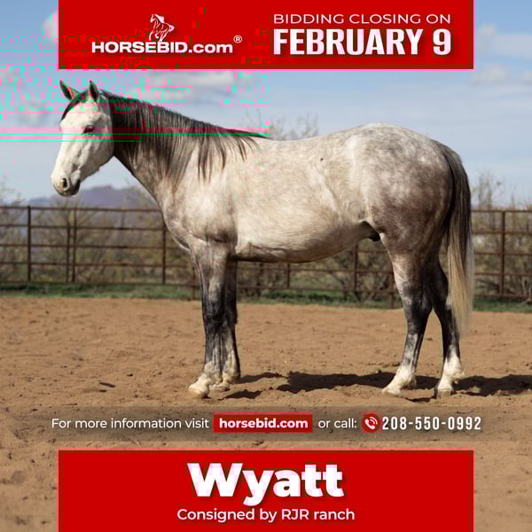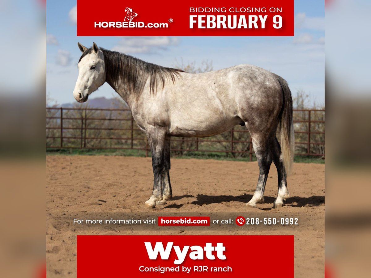 ❤️🔥𝑩𝒆 𝑴𝒊𝒏𝒆 𝐒𝐄𝐋𝐄𝐂𝐓❤️🔥 Happening now thru MONDAY | FEBRUARY 9th - Available EXCLUSIVELY on HorseBid's website! For more details and to register visit: www.Horsebid.com CONSIGNOR CONTACT: RJR ranch 208-550-0992 LOCATION: Wickenburg az BREED: AQHA REGISTERED: Yes REGISTERED NAME: Lil peppy cat COLOR: Grey HEIGHT: 14.2 AGE: 5 GENDER: Gelding Super nice all around horse! Go for a trail ride or go breakaway calves wyatt is up to the task. Absolutely willing and gentle he wants to please you. Experienced on the ranch he will watch a cow and is good to rope on out in the pasture. We have pen roped calves on him a lot and he’s going good out of the box as well. Wyatt will be safe and honest! Could be a great youth or ladies horse for almost any discipline. He’s just a joy to have around with his calm demeanor and willing attitude! He will ride bareback down the trails without shying at anything. A well bred, well broke horse that your family will enjoy for a long time. Please call fmi or to come try him before sale ends. Will help arrange transport.