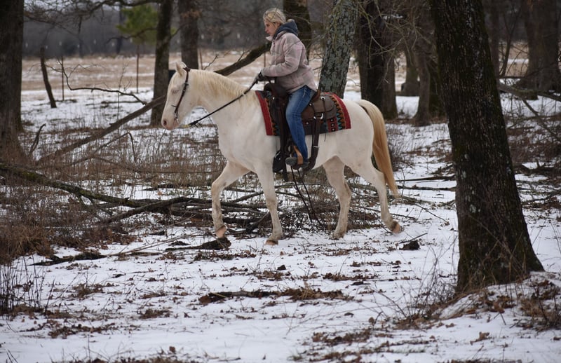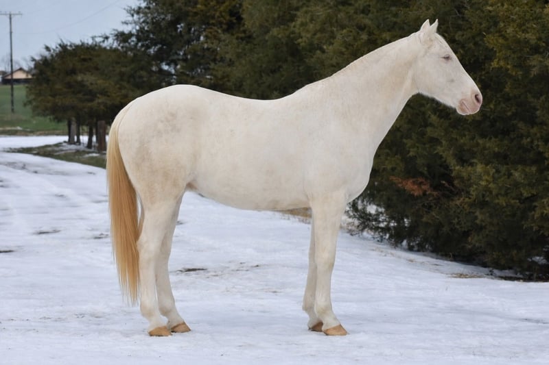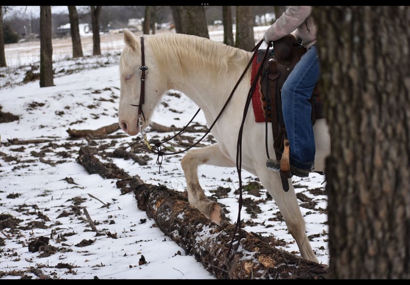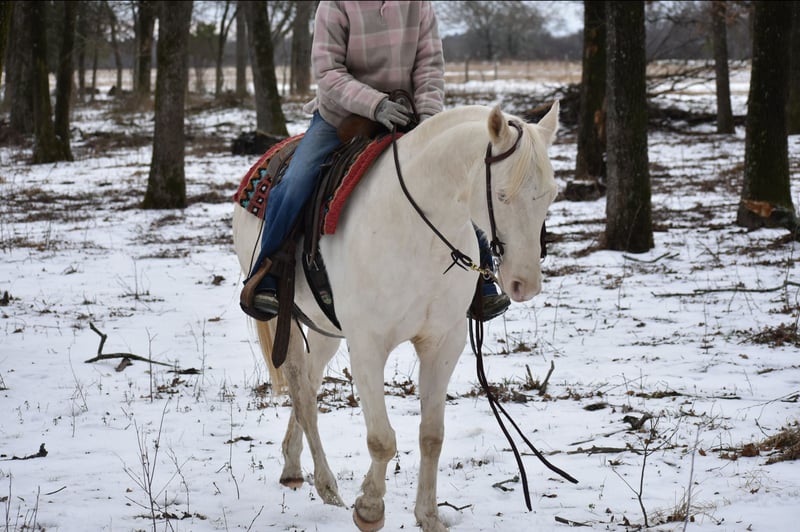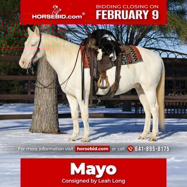 ❤️🔥𝑩𝒆 𝑴𝒊𝒏𝒆 𝐒𝐄𝐋𝐄𝐂𝐓❤️🔥 Happening now thru MONDAY | FEBRUARY 9th - Available EXCLUSIVELY on HorseBid's website! For more details and to register visit: www.Horsebid.com CONSIGNOR CONTACT: Leah Long 641-895-8175 LOCATION: Sulphur Springs, TX BREED: QH REGISTERED: No REGISTERED NAME: Mayo COLOR: Cremello Tobiano HEIGHT: 14.2 AGE: 6 GENDER: Gelding ✨ Mayo – Pretty, Polite, and Packed with Personality ✨ Mayo is 6 year old striking 14.2-hand cremello tobiano gelding with the kind of personality that makes him impossible not to love. He is incredibly gentle, kind, and honest, with a heart as good as his looks. Mayo absolutely adores attention, especially from kids and soaks up every bit of love he can get. Whistle for him and he’ll come running to put his head right in the halter. He is easy to catch, leads quietly, loads with no fuss, ties patiently, bathes well, and stands like a gentleman for the farrier. He is uncomplicated and a pleasure to be around on the ground. Under saddle, Mayo is a confident and willing partner. While he has been ridden by kids and is always gentle and respectful, he is best suited for an intermediate rider as he has a lot of buttons and is very soft in the face. He responds well to his rider, stays honest, and is enjoyable to ride for someone who appreciates a responsive horse. Mayo is a phenomenal trail horse and will cross absolutely anything you point him at steep ditches, logs, water, and rough terrain always taking care of his rider. He has been used outside to push and pen cattle, has been started on tracking the dummy, and shows a great mind for working outside. He is also a versatile gelding with experience beyond the trail. Mayo has dabbled into jumping and has had some reining training in the past, making him a well rounded horse that’s happy to try whatever job you give him. To top it all off, Mayo is eligible for PtHA papers. If you’re looking for a sweet, honest, eye catching gelding with a great mind and a lot of potential, Mayo is truly one of a kind, the kind everyone in the barn falls in love with.