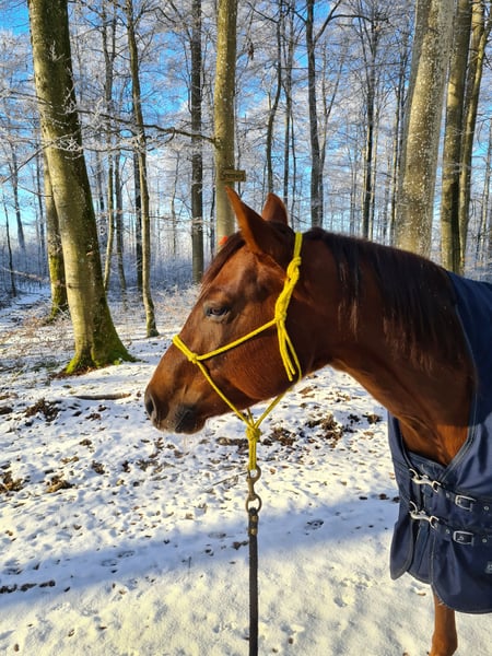 Suche ein neues 5* Zuhause für meinen Quarter Wallach GD Genuine Spark aka "Memo". Ausbildung: Grundausbildung Reining, danach im Allround Bereich weiter ausgebildet. Sicher in allen Gangarten auf dem Platz und im Gelände. Wegen längerer Reitpause auf dem Ausbildungsstand eines 4/5 jährigen. Zuverlässig im Gelände, egal ob alleine oder in der Gruppe. Memo liebt es, ausreiten zu gehen. Weitere Eckdaten: Läuft barhuf, hatte beim Vorbesitzer hinten Sliders, sozial mit anderen Wallachen (eher im Mittelfeld anzuordnen, mit Stuten stand er bisher nicht zusammen), kennt Box, Paddockbox und Offenstall. Sehr kinderlieb, wird von meinen Kids (4 und 6 Jahre) geputzt und geführt geritten. Möchte täglich arbeiten und braucht viel Abwechslung, da ihm schnell langweilig wird und er schnell lernt. Er braucht definitv einen erfahrenen Reiter oder Trainer im Hintergrund zur weiteren Ausbildung. Kein Anfängerpferd. Geht problemlos in den Hänger und steht ordentlich beim Hufschmied. Gesundheit: Memo hat einen Befund (weitere Infos hierzu gerne bei ernsthaftem Interesse), ist aber voll reitbar und lahmfrei in allen Gangarten, daher weit unter Wert und als Freizeitpferd zu verkaufen. Sonst keine gesundheitlichen Einschränkungen. Er wird regelmäßig geimpft, entwurmt und bekommt jährlich die Zähne kontrolliert. Es gilt absolut Platz vor Preis! Für genauere Informationen können Sie sich bei ernstem Interesse gerne telefonisch (0162/4076223) bei mir melden.