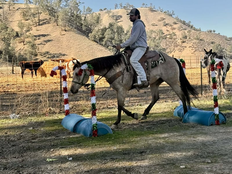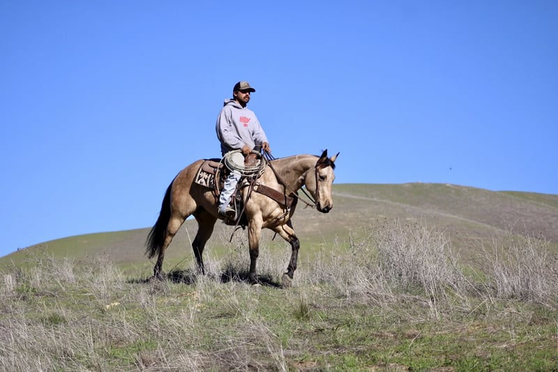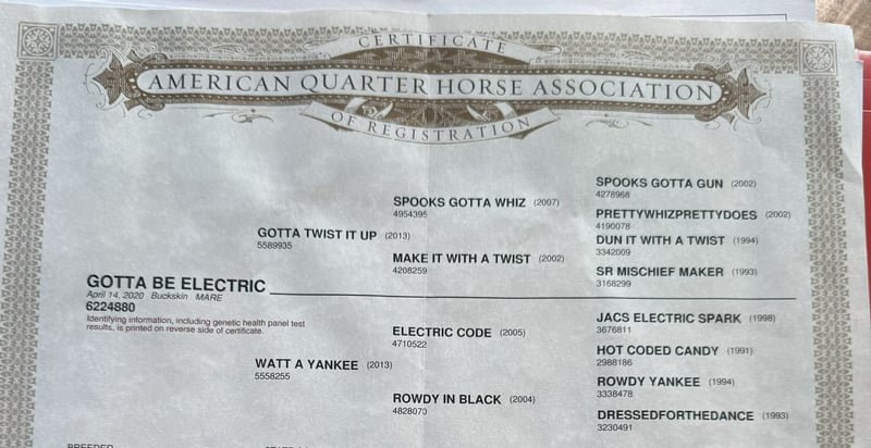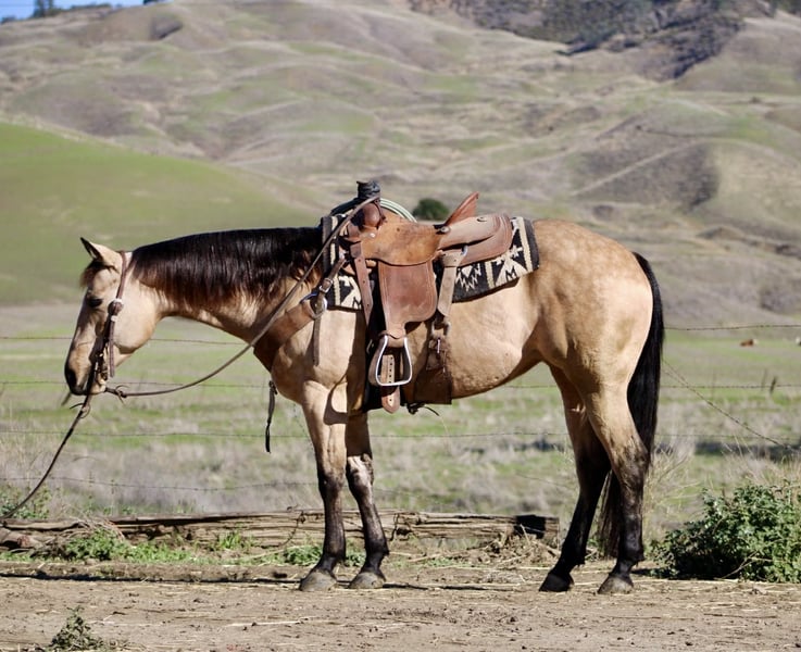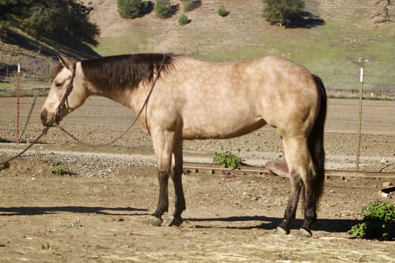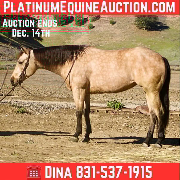 ONLINE AUCTION Place your bids at www.PlatinumEquineAuction.com Starting Bid $3500 Auction ends December 14th, 2025 Need a new saddle? Check out White Rock Saddles on our website or Facebook GOTTA BE ELECTRIC — A Dapple Buckskin Mare With Real-World Brains & Big-Time Style If you’ve been waiting for a mare that brings mind, movement, and pedigree together in one clean package, Gotta Be Electric barn name Ella is the kind that turns a search into a sure thing. Standing 14.3 hands and wrapped in a striking dappled buckskin coat, she’s every bit as pretty as she is practical. She was started in the reining, giving her a correct, useful foundation—smooth stop, an honest easy spin, and balanced, shapely circles that stay the same every ride. She’s ready to continue her show career or step right into ranch riding, ranch versatility, or everyday ranch use. She has roped the lead steer and is very cowy shes steady, and willing. She is DNA verified and 5-panel N/N (GBED, HYPP, HERDA, MH, PSSM1), offering the peace of mind of a clean genetic profile and a mare built right from the inside out. The best part? She’s the kind that will suit nearly any rider—gentle, willing, and incredibly straightforward. She aims to please and makes every ride feel uncomplicated. Out on the trail, she’s as steady as they come. She confidently crosses water, mud, brush, and uneven or tricky footing, and she handles traffic, bridges, and obstacle-course challenges like a seasoned horse. Whether you’re picking your way through rugged country or taking a quiet evening ride, she stays sure-footed, relaxed, and reliable. Her everyday manners stay consistent. She stalls or pastures without a fuss, hauls quietly, ties all day, stands for the farrier, and meets you at the gate with a soft, kind expression. Easy to handle. Easy to manage. And easy to enjoy. Her pedigree is the icing on the cake. By Gotta Twist It Up (Spooks Gotta Whiz) and out of an Electric Code mare, she carries the influence of Spooks Gotta Gun, Prettywhizprettydoes, Jacs Electric Spark, Rowdy Yankee, and more. Her future is completely open—continue her reining path, show her in ranch riding or versatility, rope on her, trail ride, or someday raise foals with real value. Smooth. Classy. Athletic. DNA verified, 5-panel clean, and truly one of the prettiest young mares you’ll find. Dina – Longhorn Ranch Paicines, California 831-537-1915 Nationwide shipping available ONLINE AUCTION Place your bids at www.PlatinumEquineAuction.com Starting Bid $3500 Auction ends December 14th, 2025 Need a new saddle? Check out White Rock Saddles on our website or Facebook