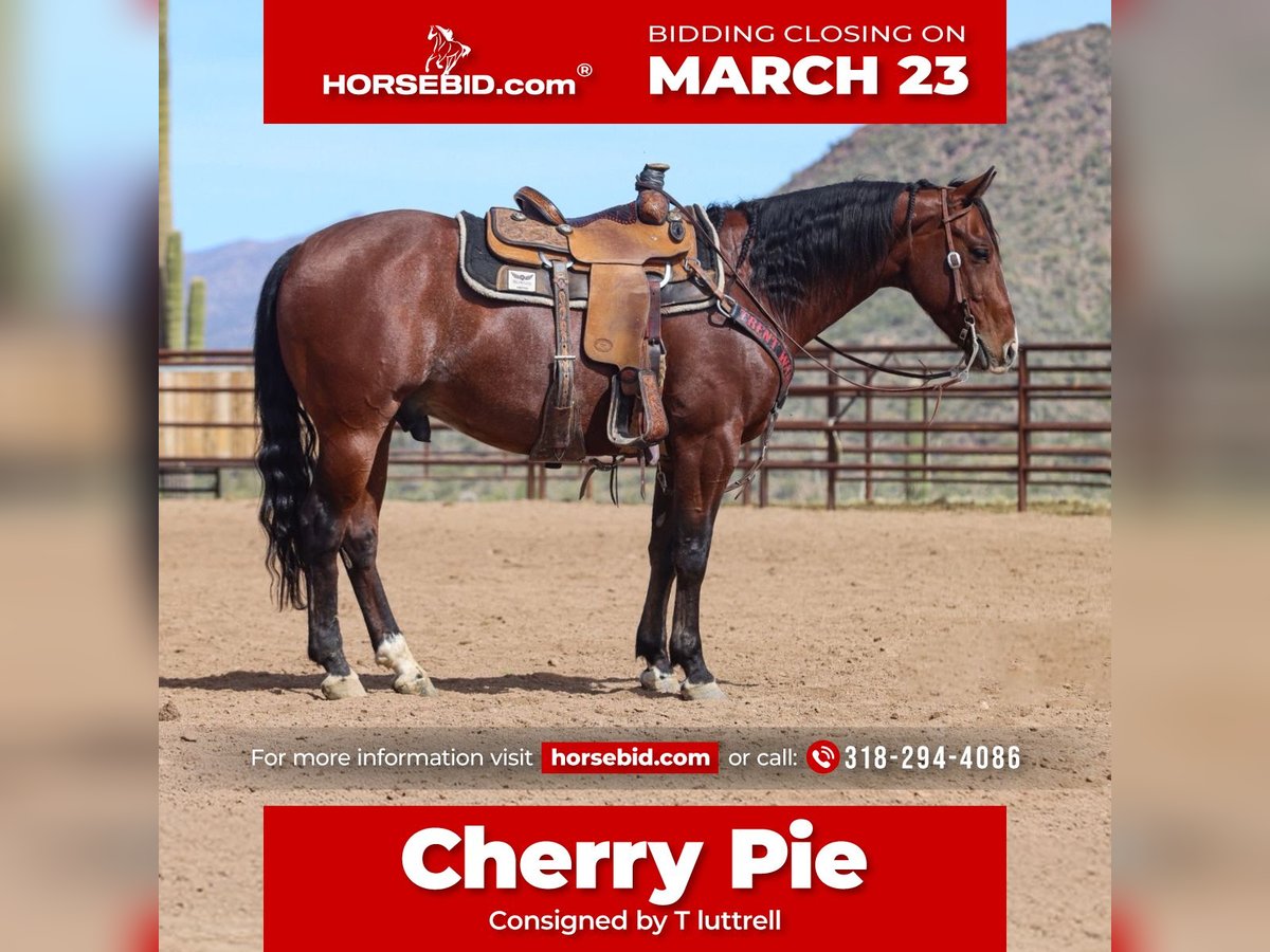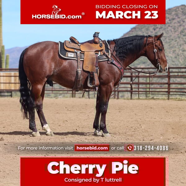 ⚜️𝓽𝓱𝓮 𝐆𝐎𝐋𝐃 𝓢𝓮𝓵𝓮𝓬𝓽⚜️ Happening now thru MONDAY | MARCH 23rd - Available EXCLUSIVELY on HorseBid's website! For more details and to register visit: www.Horsebid.com CONSIGNOR CONTACT: T luttrell 318-294-4086 LOCATION: Oklahoma BREED: Quarter horse REGISTERED: Yes REGISTERED NAME: This Cat Got Spark COLOR: Bay roan HEIGHT: 15 AGE: 6 GENDER: Gelding This Cat Got Spark is by Detroit cat a good son of metallic cat and goes back to shinning spark on the bottom side. This horse is loaded with blood to be a good one. We have hauled him around in az all winter to the jackpots. He has lots of feel between your legs and in your hands. Very light on his feet and real fast footed. Cherry pie stays free through the corner and lets you see the feet the hole time. He has plenty of run for any level but will also slow down when asked to. This horse is the kind you can ride all day everyday and he won’t quit on you. With his beautiful bay color and streaked face he is a head turner when you enter the arena on him. A real classy looking dude. If your looking for a pretty one to go win on check him out.