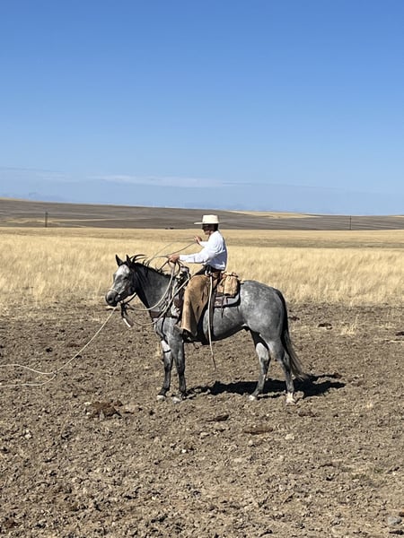 🍂 𝓐𝓾𝓽𝓾𝓶𝓷 𝑨𝑳𝑳 𝑺𝑻𝑨𝑹 𝑳𝑰𝑵𝑬𝑼𝑷 🍂 Happening now thru MONDAY | OCTOBER 6th - Available EXCLUSIVELY on HorseBid's website! For more details and to register visit: www.Horsebid.com CONSIGNOR CONTACT: Jeremy James 406-781-2227 LOCATION: Power, MT BREED: AQHA REGISTERED: Yes REGISTERED NAME: ROLLING ROYAL COL COLOR: Gray HEIGHT: 15 AGE: 6 GENDER: Gelding ROLLING ROYAL COL Meet “Amigo”. He is a 2019 AQHA gelding, standing at 15 hands. Amigo is quiet minded, eager to please and reliable in any situation. He’s an honest heart and has the ability to boost the confidence of any beginner or timid rider. He has been ridden by young and old riders alike and he always takes care of his “person”. He is very patient, especially with youth riders just starting out. If it’s learning to ride or learning to rope, Amigo is solid and steady. Even if you just need a “babysitter” for a while, he definitely fits the bill. I honestly can’t say enough good things about Amigo. Amigo is also steady and solid for your intermediate and advanced riders. He’s a great cow horse - ropes, sorts, side passes, doctors out in the pasture, opens gates and handles himself well under pressure in and out of the working pen. No challenge is too big for this boy. You can rope about anything - he knows his job. He’s a great partner at whatever task you set out to accomplish Amigo travels on any sort of terrain. He pushes cattle and a band of horses almost everyday on the ranch. He doesn’t barn or buddy sour, and rides off alone without hesitation. Amigo is use to cow dogs at his heels, and doesn’t get bothered by things along the way. He is the easiest to catch in any pen or pasture. He stands quiet for everything from grooming to saddling to shoeing. He definitely loves attention and the occasional treat! Amigo checks all the boxes as a great all-around dependable ranch and family horse who’s had lots of great experience. Amigo will be your lifelong buddy. Amigo is located in Power, MT - we are happy to help you get in contact with transport services for around the country. For more information call Melissa or Jeremy James at 406-781-2227.