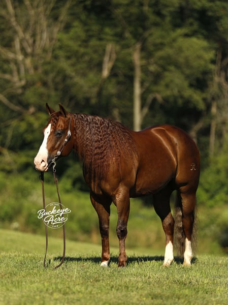 His name says it all—Promise is a horse that delivers. From his impressive breeding to his size, color, and temperament, he is built to impress. Born in 2019, this 14.1-hand Dark Sorrel AQHA Gelding is an own son of Gunnatrashya, a Hall of Fame earner with over $200K in earnings, and on the bottom side traces back to the legendary Smart Little Lena. He’s NRHA licensed, making him an ideal prospect for showing, yet his calm, sensible nature makes him perfect for the trail, ranch work, or casual riding. Promise is a head-turner with a long, flowing mane and tail, three white socks, a striking white blaze, flawless confirmation, and that bright, alert eye that exudes intelligence. He is a true all-around horse, equally at home in the show pen or out on the trail. He has already proven himself in the show ring, having been shown in a local ranch show, and continues to excel wherever he goes. He has been exposed to state roads, traffic, and countless trails. He has done ranch work checking cows, fence lines, and our back pasture herd. His gaits are smooth and balanced from walk and trot to extended trot and lope. Promise knows his leads, offers a good lead change, and can even perform a sliding stop, making him comfortable and versatile for performance or pleasure. Promise is just as steady in an indoor or outdoor arena, ridden western, English, or bareback—he never misses a beat. He is easy in the barn, great for the farrier, calm in the wash bay, and loves attention, always the first to greet you at the gate. Confident around tarps, jugs, and whips, he’s the kind of horse you can trail ride today and show tomorrow. Best of all, he is safe and dependable for any level rider—from beginner to senior to advanced, making him a rare find in today’s market. He is up to date on all vaccinations, deworming, and shoeing, and is ready to step into his next home. If this sounds like the horse you have been looking for, please feel free to reach out to Duane @ 330-231-2324 for more information or to schedule a day to stop by and see him in person.