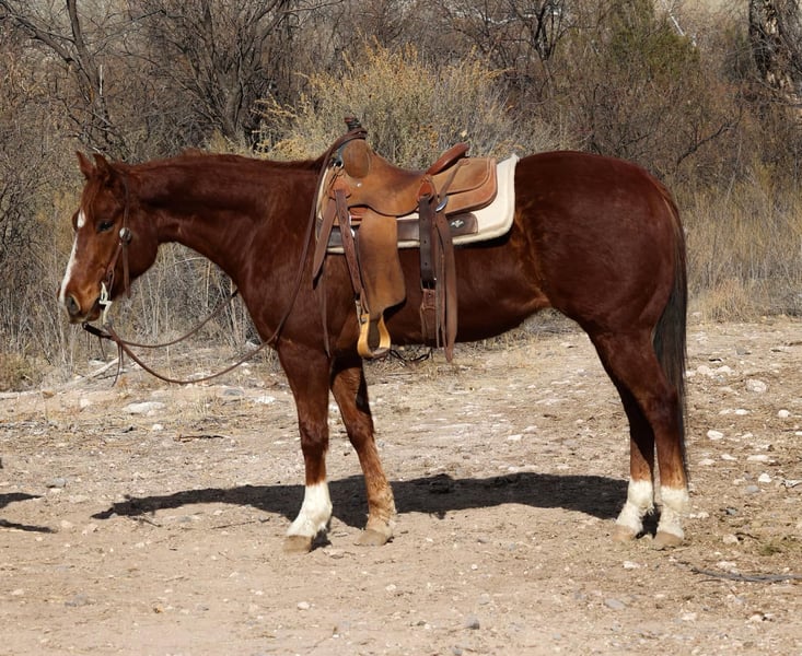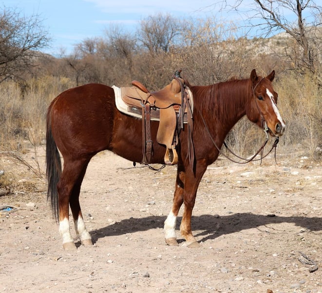 ONLINE AUCTION Place your bids at www.PlatinumEquineAuction.com Starting Bid $3500 Auction ends March 2nd, 2025 Need a new saddle? Check out White Rock Saddles on our website or Facebook! Buddy is a 6 year old grade gelding standing 14.3hh. If you’re looking for your next trail partner then look no further, Buddy is your guy!! Nestle through thick brush, crawl through rocky riverbeds, swim through flowing rivers, climb up and down steep rough terrain, cruise through the busy streets of town. You name it and Buddy will go through it without batting an eye, surefooted and gentle as can be!! Buddy is safe, gentle, and reliable with absolutely no spook or buck. Buddy will also walk, trot, and lope both ways with ease. Buddy is easy to catch and good to groom, saddle, bridle, bathe, load, and shoe! Will come with a clean coggins and health!! Located in Camp Verde, AZ Contact D/C Equine Services Dallas 804-822-2233 or Natasha 928-460-2625. ONLINE AUCTION Place your bids at www.PlatinumEquineAuction.com Starting Bid $3500 Auction ends March 2nd, 2025 Need a new saddle? Check out White Rock Saddles on our website or Facebook!