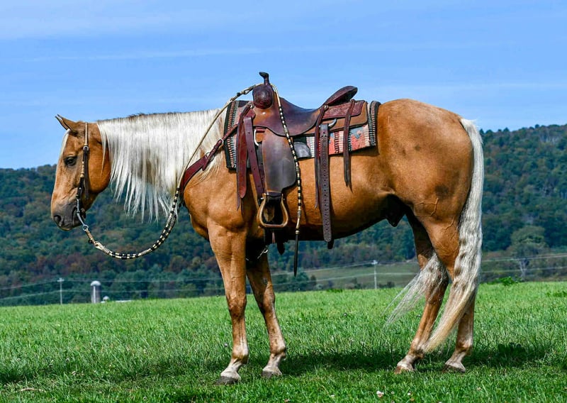 ♦️ 𝐭𝐡𝐞 𝐀𝐌𝐄𝐑𝐈𝐂𝐀𝐍 𝓕𝓪𝓵𝓵 𝓒𝓵𝓪𝓼𝓼𝓲𝓬 ♦️ Happening now thru MONDAY | OCTOBER 20th - Available EXCLUSIVELY on HorseBid's website! For more details and to register visit: www.Horsebid.com CONSIGNOR CONTACT: Marlis Farms 814-777-0607 LOCATION: Rebersburg PA BREED: Quarter Horse REGISTERED: No COLOR: Palomino HEIGHT: 15.1 AGE: 7 GENDER: Gelding Dallas is a 7 year old gelding standing at 15.1 hands that’s well built and beautiful! He is very versatile, rides English and western and loves to go out on the trails! Dallas is safe, reliable and user-friendly! He has a very smooth, well balanced walk, trot and canter. He picks up both leads, he knows the word “woah” and has a good stop, back up, he neck reins, side passes and is very soft in the bridle! Dallas has no silly quirks, his gentle and forgiving personality makes him suitable for more inexperienced riders! On the trails is where Dallas really shines! He absolutely loves adventure. We have ridden him up in the mountains and down through town and he’s enjoyed every bit of it! Dallas has no spook and easily crosses over logs, bridges, creeks, railroad tracks etc. He is traffic safe and doesn’t mind the commotion of busy streets, pedestrians, dogs or bicycles! Dallas is all around a good boy and a reliable horse to have in the barn! He has good manners, he stands well for the vet, farrier and dentist! No bad habits or vices, he can be turned out in a mixed herd or be stalled. Dallas sells 100% sound and ready to move into his forever home! For more information or to schedule a visit to meet Dallas, call Mark @ 814-777-0607