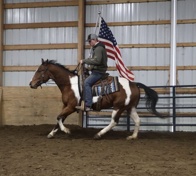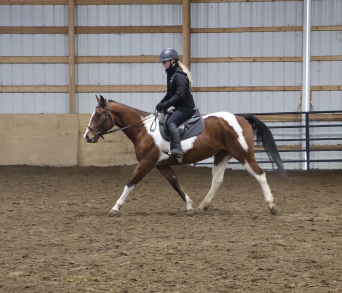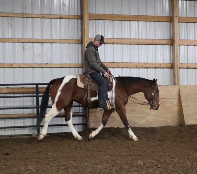 ❤️🔥𝑩𝒆 𝑴𝒊𝒏𝒆 𝐒𝐄𝐋𝐄𝐂𝐓❤️🔥 Happening now thru MONDAY | FEBRUARY 9th - Available EXCLUSIVELY on HorseBid's website! For more details and to register visit: www.Horsebid.com CONSIGNOR CONTACT: Ellesse Schwartz 248-390-6831 LOCATION: Howell, MI BREED: Quarter Horse REGISTERED: No REGISTERED NAME: Wesley COLOR: Tri colored paint HEIGHT: 15.1 AGE: 7 GENDER: Gelding Will you be mine? Meet Wesley! Talk about a flashy guy! He stands a sturdy 15.1hh at 7 years old. Wesley is a beautifully marked tri-colored paint gelding. He is very polite on the ground. He stands tied, stands for a bath, stands to be groomed and tacked. He has spent much of his life on the trails just being a laid back trail horse. With that being said he's well traveled and not reactive. Wesley has seen woods, water and wildlife. He's been down back roads and thru open fields. He's always game to go on an adventure. He will gladly take the lead but will also follow along. He rides out alone as well. He is a very simple cluck to go and pull to stop kind of ride. His gaits are so comfortable you may think you're sitting on a cloud! Recently Wesley has been started on some more formal arena work and is progressing very well. He is eager to learn and has a willing demeanor. With some Finishing touches he could clean up in the show ring! He is a best-friend type of guy looking For his next rider to hit the trails or continue arena training!