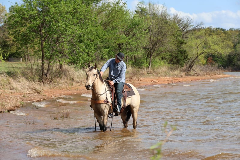⚜️𝐭𝐡𝐞 𝓔𝓵𝓲𝓽𝓮 𝐒𝐩𝐫𝐢𝐧𝐠 𝐂𝐥𝐚𝐬𝐬𝐢𝐜⚜️ Happening now thru MONDAY | APRIL 20th - Available EXCLUSIVELY on HorseBid's website! For more details and to register visit: www.Horsebid.com CONSIGNOR CONTACT: Kluver Livestock 612-223-0759 LOCATION: Ripley, OK BREED: AQHA REGISTERED: Yes REGISTERED NAME: High Driftin Woody COLOR: Buckskin HEIGHT: 15.2 AGE: 7 GENDER: Gelding Knox is the definition of a buckskin… I mean look at him with his gorgeous color! Knox is a 7 yr old gelding standing at 15.2 hands and weighing 1150 lbs! This buckskin gelding is the kind everyone is searching for good looking, gentle, and as honest as they come. With his eye-catching color and smooth, pretty way of moving, he’s the type that grabs attention everywhere he goes. He’s a true pleasure to ride with a comfortable stride and a soft, willing feel. He’s level headed, quiet, and the same horse every time you step on him. Whether you’re riding in the arena or out on the trail, he’s confident and steady, handling new places, obstacles, and whatever you point him at with ease. We’ve taken him through town, rivers, logs, rocky trails, anything you can come across on all day trail rides! His personality is what really sets him apart… he’s kind, easy to be around, and enjoys attention without being pushy. He’s the type that meets you at the gate and is always willing to go to work or just enjoy a laid-back ride. He has a great mind, stays gentle, and is easy to get along with in every way. He’s been used for full days of ranch work and knows what a job is. He’ll go all day without a fuss and still be the same quiet, dependable horse at the end of it. He’s been used at the feed lot for full days, out in the wheat field doctoring cattle, checking fences, anything you need done around your property! On top of that, he’s an easy keeper that stays in good shape with minimal upkeep, making him as practical as he is enjoyable. If you’re looking for a dependable, good-minded gelding that’s easy to ride, easy to own, and looks the part, this one checks all the boxes.
