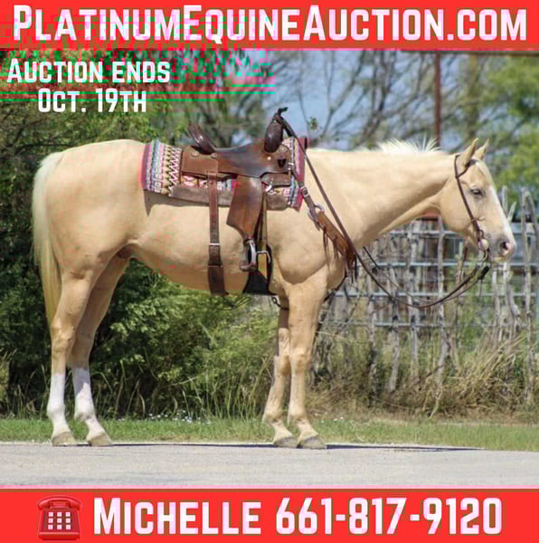 ONLINE AUCTION Place your bids at www.PlatinumEquineAuction.com Starting Bid $3500 Auction ends October 19th, 2025 Need a new saddle? Check out White Rock Saddles on our website or Facebook If tall, blonde, and handsome is your type—meet "A Guys New Image" also known as French Fry. This golden boy is the kind that’s hard to find and even harder to forget. With his stunning color, soft kind eye, and quiet, in-your-pocket personality, French Fry checks every single box for anyone looking for a true all-around gelding with a heart of gold. ✅2019 AQHA Registered gelding Guys New Image, with the legendary Frenchman’s Guy on his papers ✅Stands 16 hands with a strong, athletic build and flawless conformation ✅Lopes around soft and collected with a fancy handle and a smooth way of going ✅ Trail and ranch proven – crosses water, bridges, logs, and traffic with zero hesitation ✅ Used weekly for penning cattle, sorting, and loading trucks ✅ Been to the Fort Worth Stockyards – handled all the hustle and bustle like a pro ✅ Beginner friendly – safe, quiet, and honest ✅ Loves people – meets you at the gate, loves attention, and always aims to please French Fry is that rare combination of flash, foundation, and friendliness. He’s broke, kind, and classy—whether you’re looking for a trail buddy, a family-safe horse, or something with enough handle for ranch work or performance, this gelding can do it all. He’s got the look, the mind, the breeding, and the ride—and he’s ready to make someone very happy. We are open to anyone interested in him to schedule a time to come see him or if you can’t make it schedule a FaceTime showing to see him. If you need help with transport don’t hesitate to ask we have a list of reputable haulers that can get him safely to your doorstep WORLD WIDE including, Alaska , Mexico, Hawaii, Canada and anywhere in between. Located in Stephenville, TX. Contact Michelle with M $ Performance Horses 661-817-9120 with any questions. ONLINE AUCTION Place your bids at www.PlatinumEquineAuction.com Starting Bid $3500 Auction ends October 19th, 2025 Need a new saddle? Check out White Rock Saddles on our website or Facebook