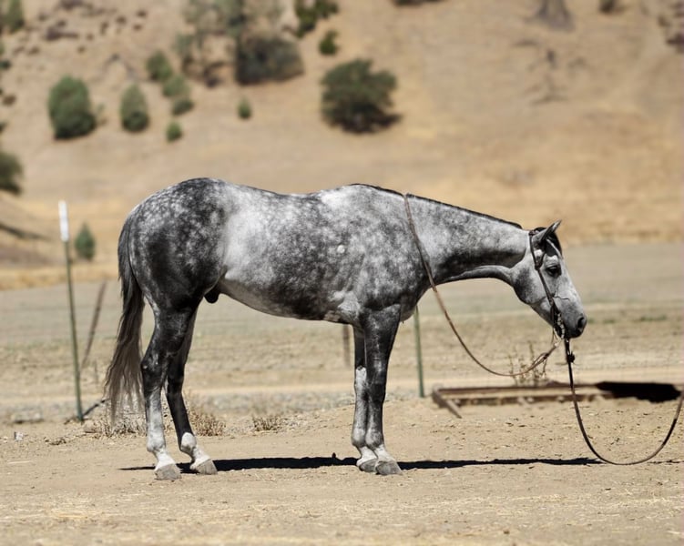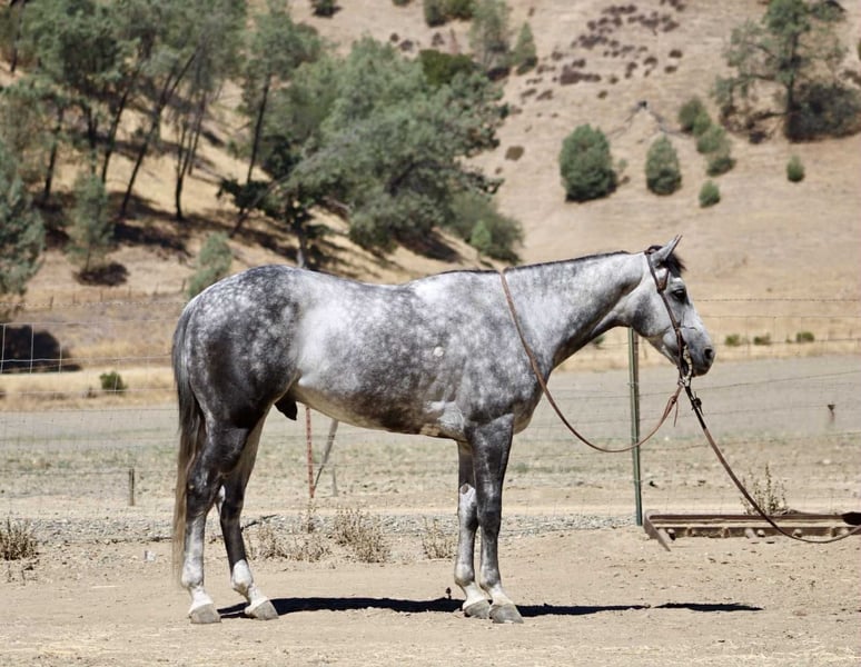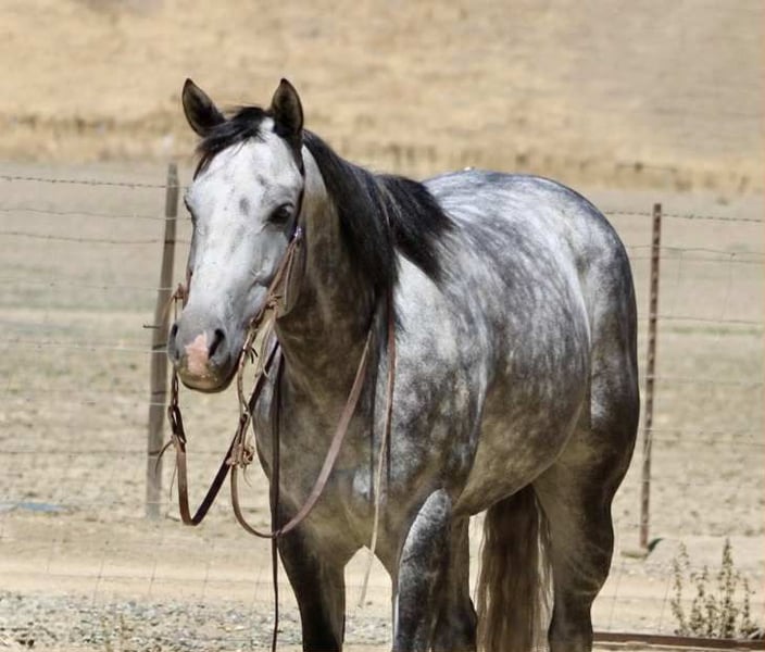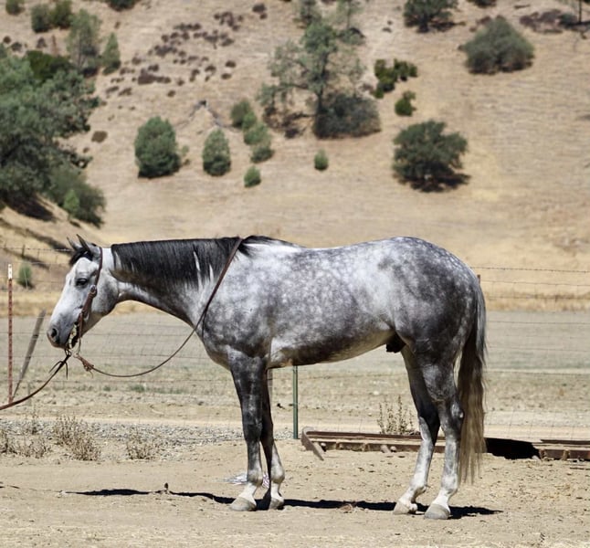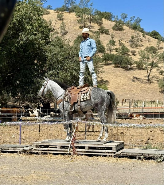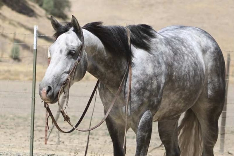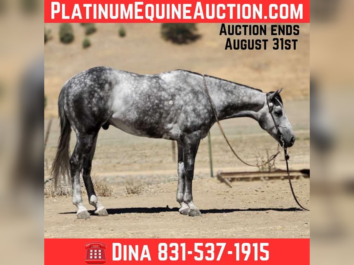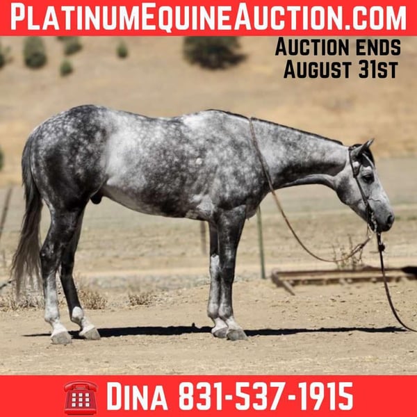 ONLINE AUCTION Place your bids at www.PlatinumEquineAuction.com Starting Bid $3500 Auction ends August 31st, 2025 Need a new saddle? Check out White Rock Saddles on our website or Facebook Atlas Steel – The Steady Ride You’ve Been Dreaming Of Looking for a horse that’s safe for the cautious rider, fun for the confident one, and handsome enough to stop traffic? Meet Atlas Steel. 7 years old. 15 hands. Silver dapples that shine like brushed metal. Wise beyond his years, he rides like an old friend and fits into your life as easy as your favorite old slipper. In the arena, Atlas is smooth and responsive—lope off soft on a loose rein, pick up his leads without a thought, stops light, backs straight, and turns balanced. Ride him polished and refined, or hop on bareback in a halter—he gives the same steady, trustworthy ride every time. On the trail, he’s point-and-go. Rocks, bridges, brush, creeks—he takes them all in stride. Wildlife, dogs, traffic? Doesn’t blink. From mountain switchbacks to quiet Sunday strolls, Atlas stays cool, sure-footed, and tuned in. On the ranch, he’s handy—gathers cattle, sorts pairs, opens gates, moves stock—always willing, never fussy. Obstacles? He makes them fun—tarps, flags, swinging gates, pool noodles, bridges, water crossings, even chasing bouncy balls like it’s his favorite game. Easy to catch, tacks up without fuss, leans into scratches like he’s been waiting for you all day. Happy in a stall or pasture, gets along with others, and current on vaccinations and Coggins. Atlas Steel is the kind you’ll measure all the others by—steady, stunning, and ready for wherever you point him. For more info contact Dina with Longhorn Ranch 831-537-1915 we are located in Paicines, CA. ONLINE AUCTION Place your bids at www.PlatinumEquineAuction.com Starting Bid $3500 Auction ends August 31st, 2025 Need a new saddle? Check out White Rock Saddles on our website or Facebook