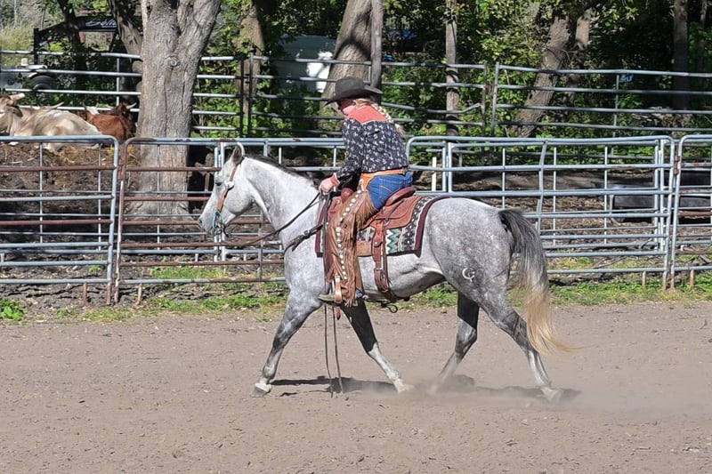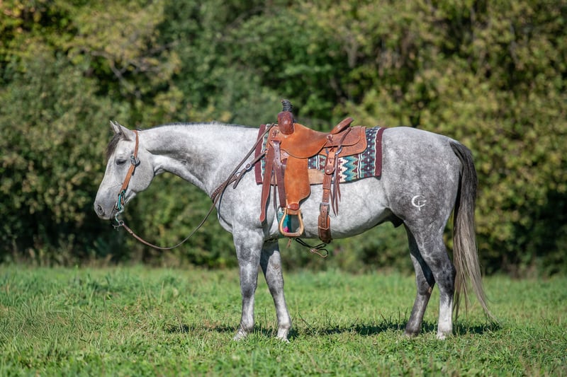 ⚜️𝐓𝐇𝐄 𝐅𝐀𝐋𝐋 𝐇𝐄𝐑𝐈𝐓𝐀𝐆𝐄 𝐂𝐋𝐀𝐒𝐒𝐈𝐂⚜️ Happening now thru MONDAY | NOVEMBER 3rd - Available EXCLUSIVELY on HorseBid's website! For more details and to register visit: www.Horsebid.com CONSIGNOR CONTACT: Codie Brown 719-691-8646 LOCATION: Hastings, MN BREED: Quarter Horse REGISTERED: No COLOR: Gray HEIGHT: 15 AGE: 8 GENDER: Gelding Grey Goose has been one of my personal horses for the last 5 years. He's has seen many days of wet saddle pads, working hard from sunup to sundown. He will make someone the perfect trail horse, riding on any terrain through any part of the country. He easily steps over downed timber, crosses creeks and ditches, and takes care of his rider. Goose has been exposed to all sorts of wildlife as well as small pets and livestock. He has also been used to lead pack mules, leading the string through trails or making his way through thick timber. Grey Goose would also work well for someone who is interested in showing in the ranch horse events. He will lope circles correctly, picking up his leads on cue. Side passes, soft one-handed neck rein, backs up, work a gate, has a nice turn around and stop. Goose even rides bareback! He can be ridden by anyone who can sit in the saddle and hold the reins. He has years of experience under saddle, and his ride is a shining example of that. Goose is easy to catch, gets along well with pasture mates when turned out, and also does well stalled. He is easy to bathe and shoe. Currently, he is barefoot, but he also does fine with shoes. If you have any questions or would like to meet Grey Goose prior to the auction ending please contact me at, 719-691-8646.