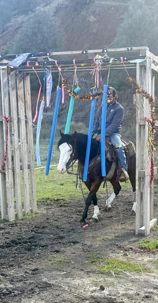 ONLINE AUCTION Place your bids at www.PlatinumEquineAuction.com Starting Bid $3500 Auction ends December 7th, 2025 Need a new saddle? Check out White Rock Saddles on our website or Facebook A CLASSY DERRINGER — SMALL PACKAGE, BIG TALENT, ZERO NONSENSE… Derringer is the little horse that rides like he’s auditioning for the head trainer position, not the warm-up pen. He’s 8 years of experience standing At 13.2 hands, he’s the perfect height for those of us who are done rock-climbing into the saddle, but still expect a horse that is correct, broke, seasoned, and truly useful. He is not a “make-do” size — he is the full-performance model, conveniently closer to the ground. I rarely, if ever, use the word bombproof — but after everything I’ve thrown at him, everything he has seen, everything he has stepped over, under, and through, I can confidently say he is as close to bombproof and unflappable as you’ll ever meet. He is, without hesitation, the most calm, steady-brained, and unrattled horse I’ve ever handled. He is suitable for both adults and kids, and if you want your child to have the best shot at becoming a real, confident, capable rider, this is the horse that will actually teach, not terrify. Good horses make good riders — Derringer builds them. He has the looks that stop conversations: deep bay, a wide bald face, two eyeliner-perfect blue eyes, and high white socks that say “yes, take another picture, I know.” He’s show-quality, video-approved, and impossible to duplicate. He isn’t just pretty — he is distinct, memorable, and rare. Derringer rides like a little reiner with a day-job — soft in the face, travels collected, moves off leg with ease, has a true stop and a clean turnaround, and lopes beautiful, pretty, correct circles in the arena like he’s been practicing for judges who won’t blink. He has been used for real ranch work — gathering, sorting, doctoring, and branding — and he has also been started heeling. He’s naturally cowy, positions himself right, and has a good, honest stop ready for someone to continue him in the roping if desired. Outside the arena, he handles everything from rocks, hills, mud and brush to water, bridges, flags, tarps, pool noodles, and wildlife — yes, even the kind that jumps out and makes seasoned horses invent new dance moves. Derringer just blinks, sighs, and keeps traveling like someone promised him hay at the end of the trail. And because you asked — yes, you can crawl on him, stand on him, hang off him, drag from him, climb around him, and he genuinely could not care less. He’s more patient than a ranch wife waiting in the truck while someone says “one more” at the branding pen. He is just as polite to live with as he is to ride: ties, clips, loads, bathes, stands for the farrier, hauls quiet, settles in new places, stalls or pastures with no drama, and stays easy on feed. Vet and farrier care is up-to-date. They don’t build them like this often. Derringer is the definition of what everyone looks for, yet almost no one gets the chance to own. He is truly unique, genuinely beautiful, and unquestionably one-of-a-kind. You can look at fifty horses or five hundred — you won’t match him.Come see him for yourself and you will fall in love just like we all have with this special boy. He is one that is hard for us to let go of. Location: Paicines, California Owner: Dina -Longhorn Ranch Phone: 831-537-1915 Shipping: Nationwide, professional haulers available Vet & Farrier: Current, correct, and consistently maintained ONLINE AUCTION Place your bids at www.PlatinumEquineAuction.com Starting Bid $3500 Auction ends December 7th, 2025 Need a new saddle? Check out White Rock Saddles on our website or Facebook