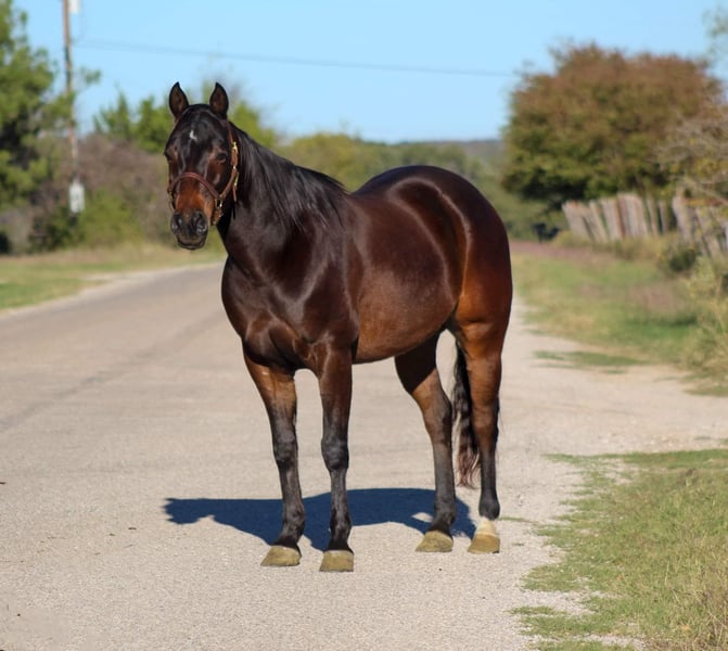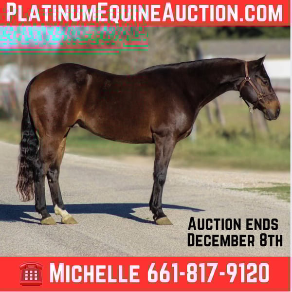 ONLINE AUCTION Place your bids at www.PlatinumEquineAuction.com Starting Bid $3500 Auction ends December 8th, 2024 Need a new saddle? Check out White Rock Saddles on our website or Facebook! Tenns Special Gun is a 2017 model AQHA brown gelding standing 14.1hh and built the very best. Willy as we call him around the barn is an exceptional young gelding that has a pedigree packed with winners including the GREAT 6666’s stud Playgun who is the sire of the earners of more than $10,000,000. He also is a great grandson of Smart Lil Richochet who is the sire of multiple NCHA champions with offspring earnings in excess of $3.9 million! Willy has a fun personality and loves to please! He has had exceptional training and rides around the very best . Willy will walk,trot, and lope the most beautiful perfect circles with his nose in the dirt. He will move off your leg, side pass , has a great turn around on him both ways. He has absolutely flawless lead departures. Willy is very smooth at any gait and lopes around like a rocking chair. He has been showed a little bit in the ranch riding events and would make an exceptional youth or amateur show horse. I absolutely guarantee you this gelding will not disappoint. He has been trained with the Craig Cameron horsemanship methods. We have used Willy a ton outside to check cattle and fences , load trucks. Willy is cowy and loves to work a cow which also makes him a great candidate for someone wanting to go to the ranch sorting events. He is just a FUN all around kind of guy. He is so much fun to take down the trails and truly enjoys it. He will cross water, logs, brush , goes up and down hills with no issues at all. Ride him in town with the bright lights , traffic , crowds of up people this guy doesn’t mind one bit . He’s absolutely exceptional at whatever you do on him. Willy is ALWAYS the first one to meet you at the gate this guy LOVES attention. He’s always waiting for the neighbor kids to bring him cookies and come to give him all the attention in the world . Willy stays gentle he is absolutely one of the fanciest , best minded , athletic horses we have been able to offer and were so proud of him. We just know his next family is gonna enjoy him as much as we have. Christmas is right around the corner and Willy is the perfect present! Located in Stephenville, TX. Contact M$ Performance Horses Michelle 661-817-9120 to come try him, or we can set up a FaceTime call as well. If you need help with transport don’t hesitate to ask we have a list of reputable haulers that can get him safely to your doorstep WORLD WIDE including, Alaska , Mexico, Hawaii and Canada. ONLINE AUCTION Place your bids at www.PlatinumEquineAuction.com Starting Bid $3500 Auction ends December 8th, 2024 Need a new saddle? Check out White Rock Saddles on our website or Facebook!
