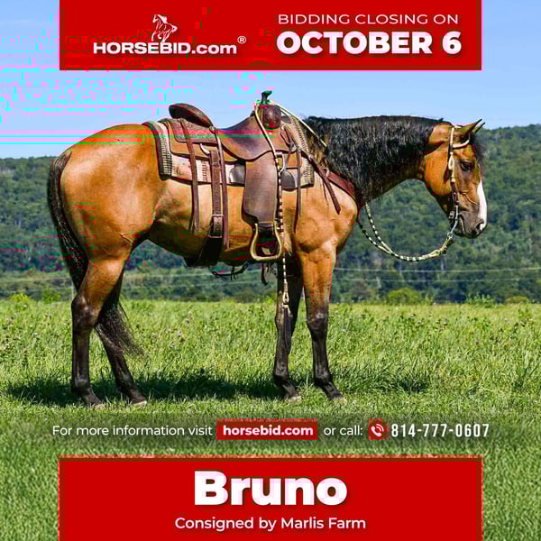 🍂 𝓐𝓾𝓽𝓾𝓶𝓷 𝑨𝑳𝑳 𝑺𝑻𝑨𝑹 𝑳𝑰𝑵𝑬𝑼𝑷 🍂 Happening now thru MONDAY | OCTOBER 6th - Available EXCLUSIVELY on HorseBid's website! For more details and to register visit: www.Horsebid.com CONSIGNOR CONTACT: Marlis Farm 814-777-0607 LOCATION: Rebersburg, PA BREED: Quarter horse REGISTERED: No COLOR: Dun HEIGHT: 14.3 AGE: 8 GENDER: Gelding Bruno as we call him is an 8yr old 14.3 hand dun quarter horse gelding that is well trained and fun to have around, he is a seasoned trail horse he will go over logs and through water and wherever you point him. Bruno rides well inside the arena and outside. He has a smooth walk trot and canter and picks up both his leads. He is soft in the bridle and has a big stop. We have taken Bruno down the main highway into town, and he dont mind all the traffic! Bruno is laid back and rides the same everyday whether you ride him daily or once a month ,he does not easily get excited making him the perfect choice for a leisure afternoon trail ride . We have used Bruno to chase cattle and check fences. We have exposed him to tarps, bouncy balls and all kinds of obstacles, and he takes it all like a walk in the park. Bruno is quiet enough for my boys to brush and lead around the barn yard and also ride him in the arena. Bruno rides english, and also takes a jump and enjoys every minute of it. He stands to be tacked and mounted, and to be bathed and stands for the farrier. Bruno does well inside and turned out in a mixed herd. He loves attention and is the first one to meet you at the gate. We have taken Bruno to national parks for day rides, and he doesnt mind all the bikes, dogs and commotion. Bruno sells sane, sound and ready to move into his forever home . For more info or to come meet him in person, feel free to call Mark 814 777 0607 We can help arrange shipping anywhere!!
