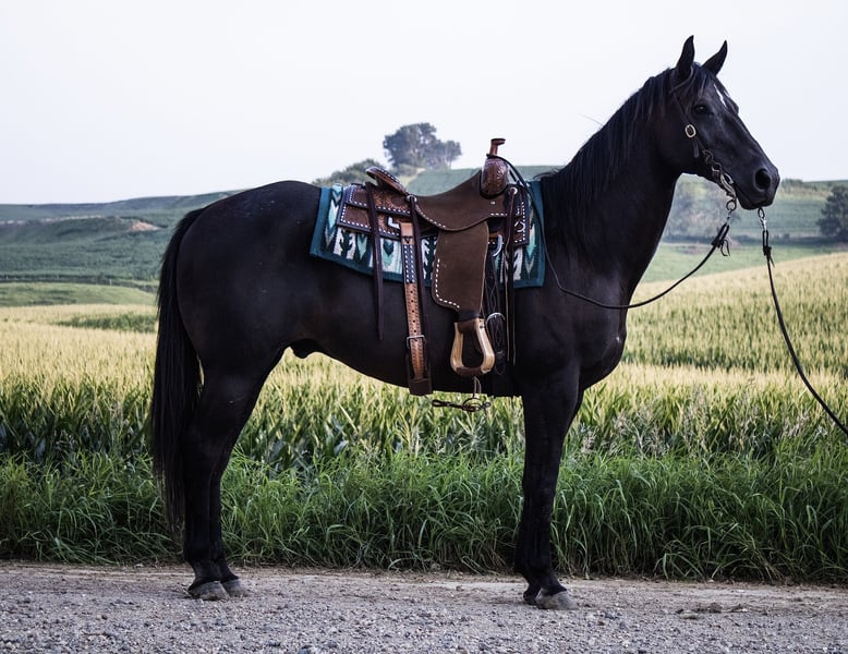 "AVAILABLE ON ONLINE HORSE AUCTION AT www DOT MagicHorseAuction DOT com BIDDING OPEN NOW thru TUESDAY | SEPTEMBER 2ND! - BUY IT NOW AVAILABLE! *Final price will be determined on auction site* CONSIGNOR CONTACT INFO: McKenzie Cramer 330-307-0323 LOCATION: Battle Creek, IA 𝘗𝘩𝘦𝘯𝘰𝘮𝘦𝘯𝘢𝘭 𝘵𝘳𝘢𝘪𝘭 𝘩𝘰𝘳𝘴𝘦 𝘨𝘰𝘦𝘴 𝘸𝘩𝘦𝘳𝘦 𝘺𝘰𝘶 𝘱𝘰𝘪𝘯𝘵 𝘩𝘪𝘮, 𝘯𝘰𝘵 𝘴𝘱𝘰𝘰𝘬𝘺, 𝘴𝘶𝘳𝘦 𝘧𝘰𝘰𝘵𝘦𝘥 𝘢𝘯𝘥 𝘢𝘴 𝘩𝘰𝘯𝘦𝘴𝘵 𝘢𝘴 𝘵𝘩𝘦𝘺 𝘤𝘢𝘯 𝘣𝘦. 𝘏𝘦 𝘸𝘪𝘭𝘭 𝘳𝘪𝘥𝘦 𝘰𝘶𝘵 𝘢𝘭𝘰𝘯𝘦 𝘰𝘳 𝘸𝘪𝘵𝘩 𝘰𝘵𝘩𝘦𝘳 𝘩𝘰𝘳𝘴𝘦𝘴. 𝘏𝘦 𝘪𝘴 𝘵𝘳𝘢𝘧𝘧𝘪𝘤 𝘴𝘢𝘧𝘦 𝘢𝘯𝘥 𝘨𝘰𝘰𝘥 𝘢𝘳𝘰𝘶𝘯𝘥 𝘈𝘛𝘝𝘴, 𝘧𝘢𝘳𝘮 𝘦𝘲𝘶𝘪𝘱𝘮𝘦𝘯𝘵 𝘢𝘯𝘥 𝘥𝘰𝘨𝘴. Jet is a 9 year old gelding that stands 15 hands tall. If you’re looking for a horse to be a best friend he’s your guy! His disposition is exceptional. This gelding is full of love and personality. Jet would be the perfect mount to any family looking for a horse gentle enough for the kids to hop on but big enough to pack dad through the mountains and trails. Jet has been used this summer mainly as a trail horse . He has also been used in 4-H and is patterned on the barrels/poles and other gaming events. He is used to all the noise and action that the rodeo brings! Jet will even carry a flag! He hauls great, settles into new places like he’s been there a dozen times! He eats and drinks on the road and is very easy going. He trail rides perfectly whether you are in the front or back . He crosses water, logs, brush and ditches with confidence and ease. He is sure footed on different terrain as well. He is accustomed to seeing cattle and many different livestock. He lopes nice circles both directions and you can even ride him bridleless. At the barn Jet does all the things one should do; bathe , stand for the vet and farrier. He can be kept in a stall or turned out with other horses Either way he does not cause any problems. He comes to you when it’s time to be caught . Jet is one of those geldings that it does not matter if you ride once a week or a year he will be the same every time you climb in the saddle and there is no need for tuning, lunging or funny business!
