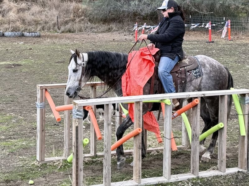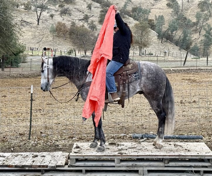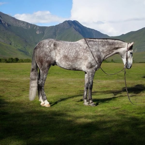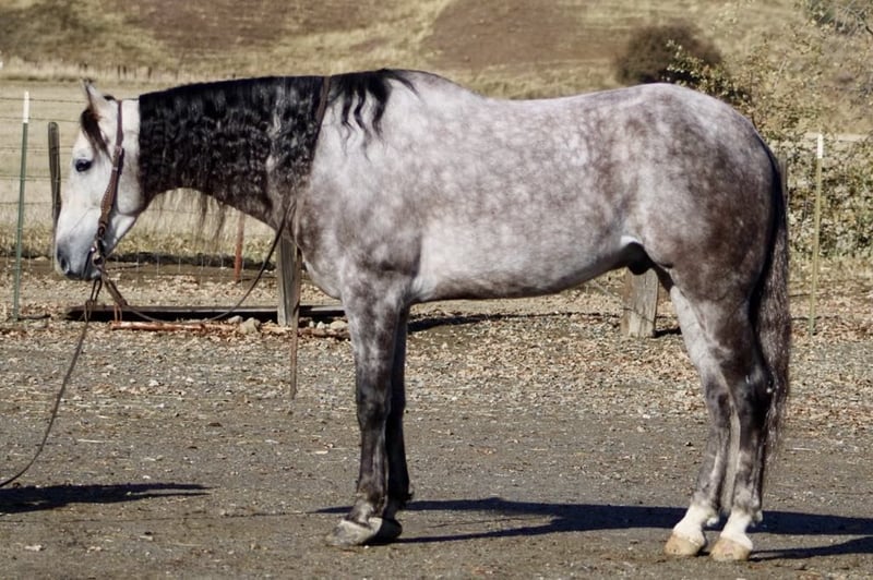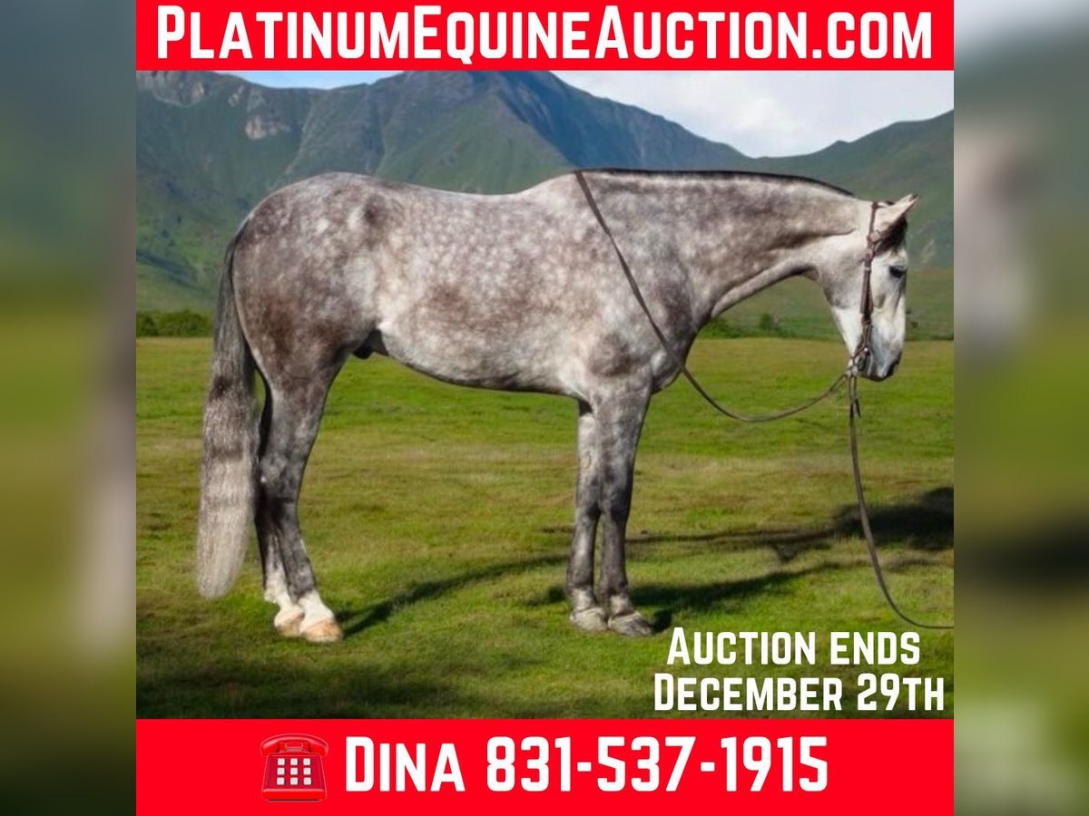 ONLINE AUCTION Place your bids at www.PlatinumEquineAuction.com Starting Bid $3500 Auction ends December 29th, 2024 Need a new saddle? Check out White Rock Saddles on our website or Facebook! Start the new year out right with this stunning 15.1-hand, 7 year old dappled grey gelding with his long beautiful mane and tail he embodies the epitome of both elegance and beauty, presenting an impressive package that captivates all who encounter him. His gentle demeanor and unwavering safety make him an ideal companion for riders of varying experience levels. On trail rides, Earl showcases his sure-footedness as he navigates through thick brush, across water crossings, and over downed trees with remarkable grace. In the arena, his fluid movement in all gaits reflects a soft and supple feel; he effortlessly stops and backs with ease a testament to his training and responsiveness. Earl’s ranch versatility shines through as he eagerly gathers cattle has branded and loaded trucks. Impressive in urban settings too, this reliable horse has been confidently ridden through congested streets amidst bustling traffic without a hint of trepidation around crowds or distractions.His cross-discipline abilities are equally noteworthy; riding English or Western allows Earl to flaunt his natural elegance fittingly suited for dressage pursuits. With a temperament that is both friendly and kind-hearted, he proves easy to handle loading into any trailer with composure while standing tied patiently at events or during grooming sessions with the farrier. Earl is so easy going you can stand up on him ride him in halter bareback while he stands there enjoying the fun. Whether participating in group rides or enjoying solo adventures under open skies, Earl consistently garners attention wherever he goes; parades are no exception as he’s participated in grand entries seamlessly navigating obstacles he will walk over bridges tires and tarps, bouncing balls nearby truly showcasing his adaptability. He is great in the pasture out with friends or will also enjoy a nice comfy stall. Earl is ready to start the new year with his new family. Please come meet this wonderful boy you won’t be disappointed contact Longhorn Ranch, Dina 831-537-1915 located in Paicines, CA. ONLINE AUCTION Place your bids at www.PlatinumEquineAuction.com Starting Bid $3500 Auction ends December 29th, 2024 Need a new saddle? Check out White Rock Saddles on our website or Facebook!