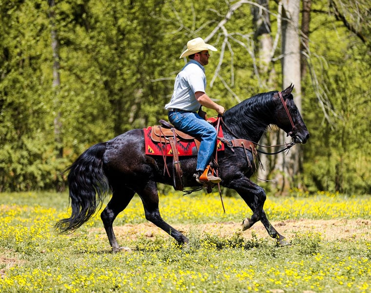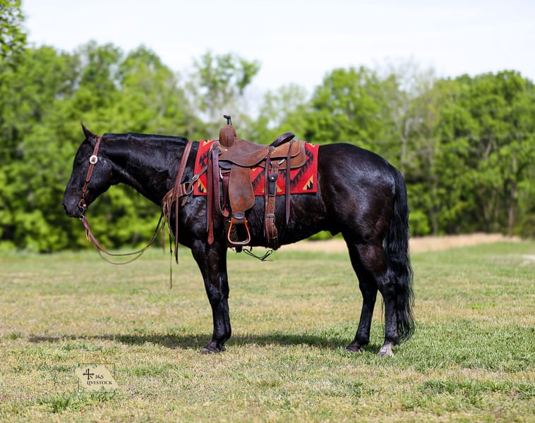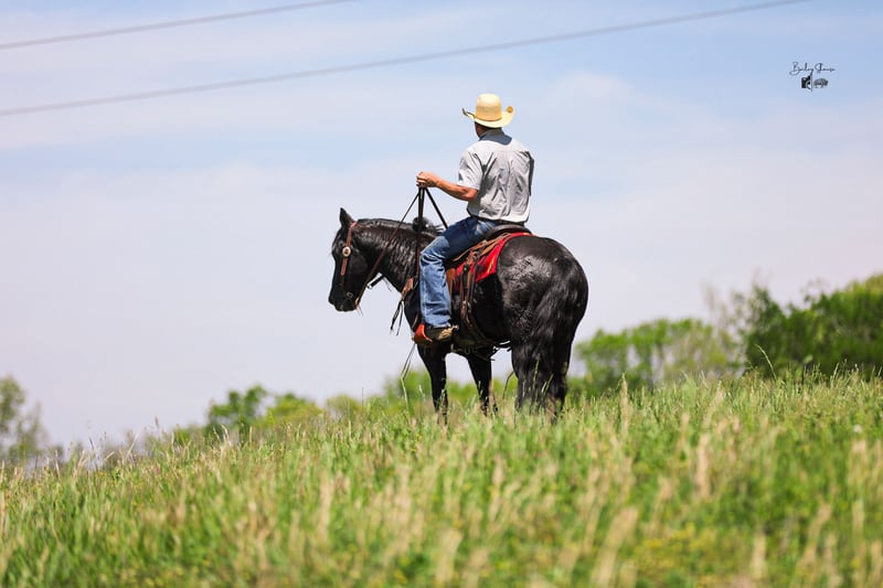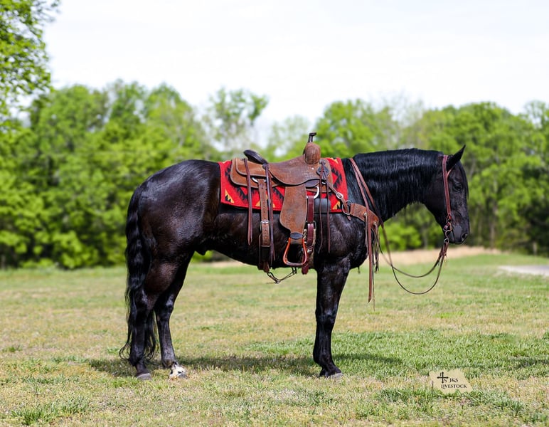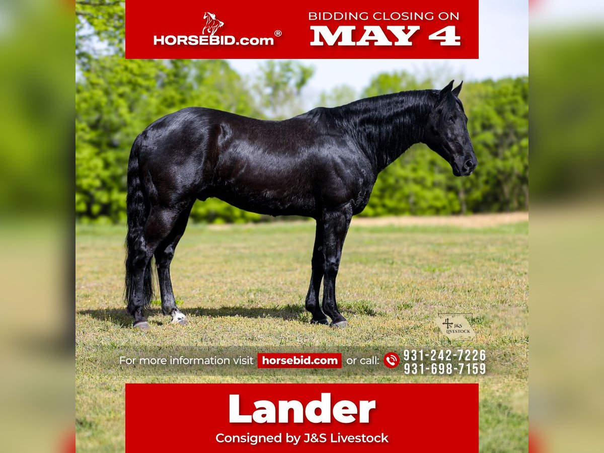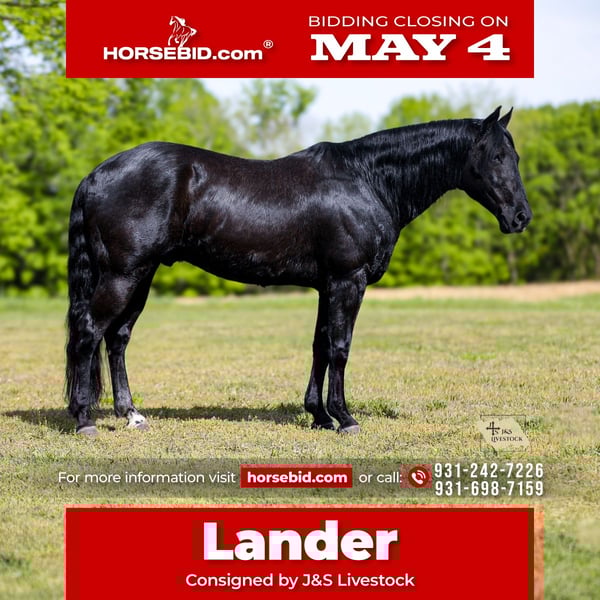 ▪️▫️◾️𝐭𝐡𝐞 𝑴𝒂𝒚 𝐒𝐞𝐥𝐞𝐜𝐭◾️▫️▪️ Happening now thru MONDAY | MAY 4th - Available EXCLUSIVELY on HorseBid's website! For more details and to register visit: www.Horsebid.com CONSIGNOR CONTACT: J&S Livestock 931-242-7226 or 931-698-7159 LOCATION: Santa Fe, TN BREED: Quarter Horse REGISTERED: No COLOR: Black HEIGHT: 15.1 AGE: 9 GENDER: Gelding Meet lander, a real-life black beauty that is drop-dead gorgeous and the perfect age being only 9-years old, standing 15.1hh and IS the ultimate dream horse. When it comes to eye appeal, shape, athleticism, brains, and personality..Lander will have it all plus some. You truly don’t come across horses like him often- he is incredibly gentle and the definition of class and capability. He will be that once in a lifetime horse that everyone goes on and on about wanting. The way he carries himself with such pride in every stride he takes is truly breathtaking. He is super smooth which makes for easy traveling. He catches his leads perfectly and has a nice and easy jog, trot, and slow lope. Lander is soft in the bridle, neck reins like a pro, cues off leg pressure, and rides with such confidence- you can even ride him without a bridle just as good! This incredible gelding is so versatile, he has the ability to go down so many different avenues. He is no stranger to a hard days work on the ranch. He has been used to sort, gather, and doctor cattle on. We have also used him to check fences around our place- which he makes pretty easy being as he is quite the pro when it comes to crossing water, rocky ground, inclines, or being around noisy farm machinery. He has had maximum exposure while being with us- he has been around flighty cattle, barking dogs, goats, and even bison. Lander also hasn’t seen a trail he couldn’t conquer. He would also make someone a nice weekend trail horse if that’s your thing. He does excellent on over night camping trips. He rides out alone or in a group, and will happily lead the pack or follow along in the rear. He has truly been a favorite around the barn to just hop on and go and do whatever on. He is also youth suitable making it pretty easy to put just about anyone on him that can hold a set of reins. I truly cannot describe how big this geldings heart is- he has the best personality and most willing attitude. He loves to just lean in and lay his head on your shoulder, begging for you to love on him. He wants to please you and be your absolute best buddy. Out in the pasture he is easy to catch, or you can keep him stalled- he is great with either. He is easy as can be to bathe. He loads in and out of a trailer like a superstar and is good for the farrier. This is such a solid and stylish gelding with a pure heart of gold that will be the same horse every single day- whether your trail riding him on the weekends, using him for long hard day-working jobs on the ranch, or covering some open country, Lander will be your most dependable man. One of my favorite things about Lander is how level headed he stays no matter the situation, he never gets tore up and always seems to stay so cool, calm, and collected. Most of all his riders safety is his top priority. Lander is 100% sound and sane. He requires zero maintenance and is up-to-date on vaccines. He also has a very recent PPE (4-14-26) For any further information/questions please feel free to reach out! Bailey 931-242-7226 or JT 931-698-7159