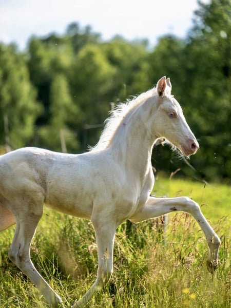 ✨ Introducing "Dance of the Sugar Fairy," a filly that stands out among her peers – a true masterpiece of nature. She is the only Cremello Tobiano foal worldwide within the American Saddlebred breed – a living rarity that captivates instantly with her grace and presence. Her appearance resembles a dance of light and movement: noble, harmonious, full of expression, and with a commanding presence that cannot be overlooked. Even now, she displays the proud carriage and floating lightness that make the American Saddlebred so unmistakable, making her truly special in her own right. ⸻ 💎 Special Features - Unique Color Genetics: the only Cremello Tobiano Saddlebred foal worldwide - Impressive Presence: elegant build, noble head, clear eye - Excellent Pedigree: combining quality, type, and character - Future Potential: ideal for show, breeding, and demanding riding disciplines ⸻ 🌷 Origin & Rearing "Dance of the Sugar Fairy" is raised with great care – with daily attention, top-quality nutrition, and expert guidance. She is already familiar with the basics of foal training, is human-oriented, curious, and consistently displays a natural calmness. ⸻ 🌟 A Promise for the Future This foal is not just a horse – it is a rarity, a statement, and an investment in the extraordinary. "Dance of the Sugar Fairy" embodies what true horse enthusiasts seek: beauty, rarity, and soul. ⸻ 📍 Location: WingWalkerFarm, 58566 Kierspe / NRW 📞 Contact: 0151 21582655 | info@wingwalkerfarm.de
