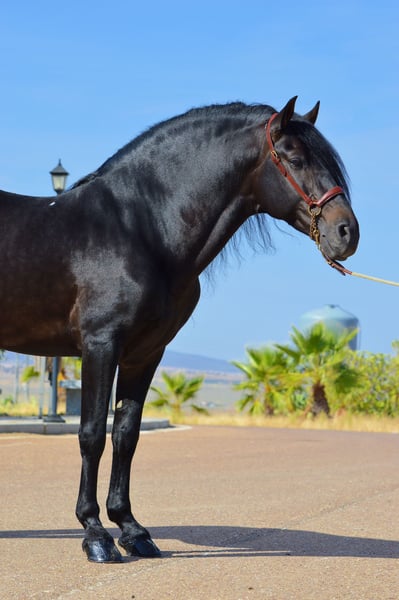 Some horses captivate — this one enchants. This extraordinary Andalusian stallion embodies everything one could wish for in a dream horse: a proud, baroque appearance, a gentle heart, and an aura full of calmness. Character & Temperament: A true gentleman — very kind and soft. Gentle, sensitive, and always eager to please his handler. He approaches everyone with respect and trust — a partner who touches both heart and mind. Trail-safe: Fearless, calm, and dependable — whether in the terrain, through forests, or along roads. A horse that provides security and exudes pure serenity. Baroque strength meets Spanish elegance: His powerful build, shiny coat, and proud posture make him a true eye-catcher. Yet, his true beauty lies in his inner calm and noble demeanor. A horse for people with heart and style. For those who recognize and appreciate the extraordinary.
