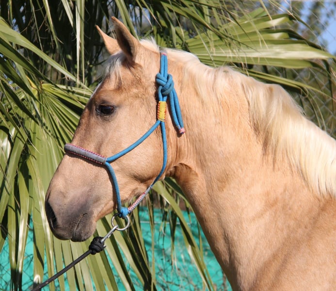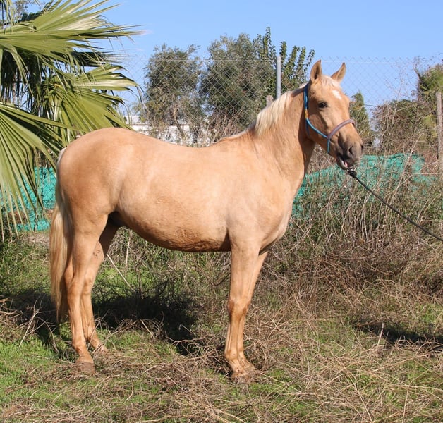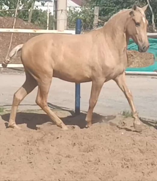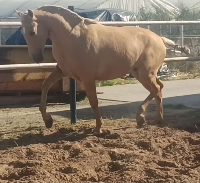 Ce joli poulain a maintenant 2 ans et demi et possède un tempérament calme. Il est facile à manipuler, peu marqué par l'étalon, et attire tous les regards par sa beauté. Ceux qui recherchent un cheval particulier pour le former eux-mêmes y trouveront leur compagnon pour la vie. Un examen vétérinaire approfondi peut être commandé. Le transport sera organisé à l'international. Vidéos sur demande.