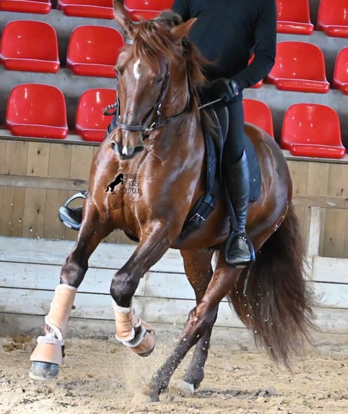 Ce hongre PRE né en 2020 (Andalou avec attestation de race de l'ANCCE) est, à bien des égards, un véritable régal pour les yeux ! Il est indéniable que sa beauté époustouflante attire immédiatement l'attention, renforcée par la nuance cuivrée de son pelage et son esprit. Mais derrière cette belle façade, il y a bien plus à découvrir. Sa lignée est supérieure, car il est le fils du multiple CHAMPION DU MONDE Fer Bonachon de Eda et donc le petit-fils du célèbre Fer Bago. Dans sa généalogie, nous trouvons non seulement le champion du monde et donc la lignée FERRERO, mais aussi Monis, Marin Garcia, Yeguada Militar, Guardiola et Bohorquez ! Du côté maternel, il a des chevaux noirs, des bai et des marrons dans sa lignée, ce qui le rend également très intéressant en tant qu'étalon, car la plupart des enfants de Bonachon ressemblent à leur père en tant que gris et il transmet cette lignée TOP, avec plus d'options pour une descendance colorée. Il est approuvé et a déjà une descendance, également un bai, ce qui confirme qu'il est coloré en tant qu'étalon, en plus de sa lignée, plus qu'intéressant. En manipulation, c'est un véritable gentleman et bien qu'il ait déjà sailli, il n'est pas du tout chaud ou étalon. Si la détention de stallion n'est pas possible, il y a bien sûr l'option de castration sur place. Les cavaliers ambitieux s'amuseront certainement avec lui, car il apprend vite, à condition d'avoir le bon sens pour canaliser sa flamme espagnole (le feu serait exagéré), car sous le cavalier, il veut tout donner et se révèle vraiment. Même sous la selle, il ne montre absolument aucun vice, mais veut toujours en montrer plus, ce qui fait qu'un cavalier qui le reprend brièvement au pas avec les rênes longues est préférable, plutôt que de le pousser. Un magnifique étalon, avec beaucoup de potentiel dans diverses disciplines, qui ravira les yeux et le cœur ! Prix en fonction de la qualité. Sa taille actuelle est de 160 cm. Il est actuellement à Majorque ! Des vidéos et des informations sur sa lignée sont disponibles sur demande. Je peux organiser sur place une visite vétérinaire, une castration, un débourrage, un transport ou même votre voyage, si vous souhaitez venir le voir en personne. Plus de détails sont disponibles sur ma page ou lors d'une conversation. Salutations d'Espagne.