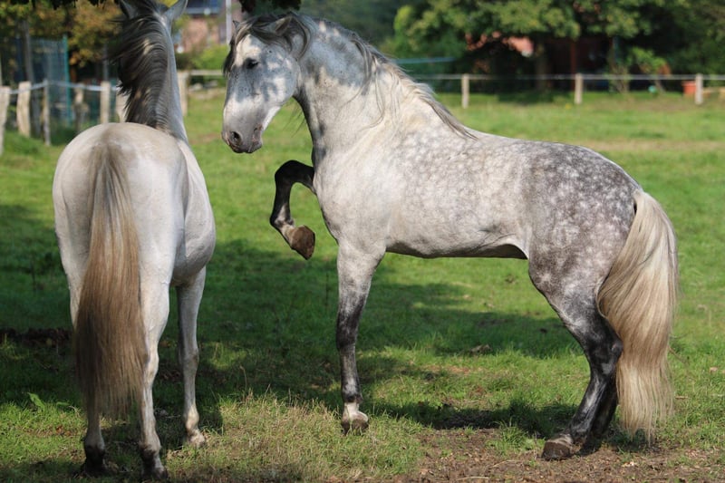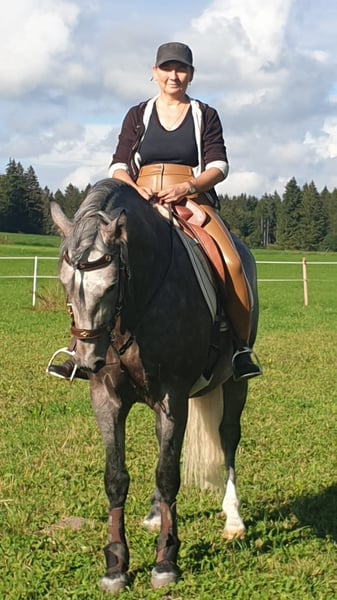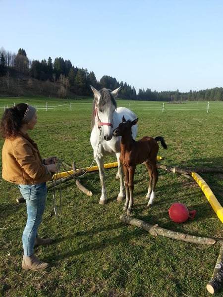 Avalon, a 7-year-old gelding, both parents purebred PREs. He is registered as a leisure horse, as I never intended to sell him before I sold his dam. Avalon was born and raised with me, carefully trained from the ground up and under saddle based on classical principles. He is a horse full of trust in his handler, always eager to please and to learn. He shows no stallion-like behaviors in handling or under saddle. I am looking for a person who, with gentle consistency and plenty of time, will nurture his truly outstanding qualities and become a trustworthy partner he can confide in and lean on. If you are genuinely interested in this wonderful horse, I am happy to answer any further questions personally. The last photos show his dam and sire.