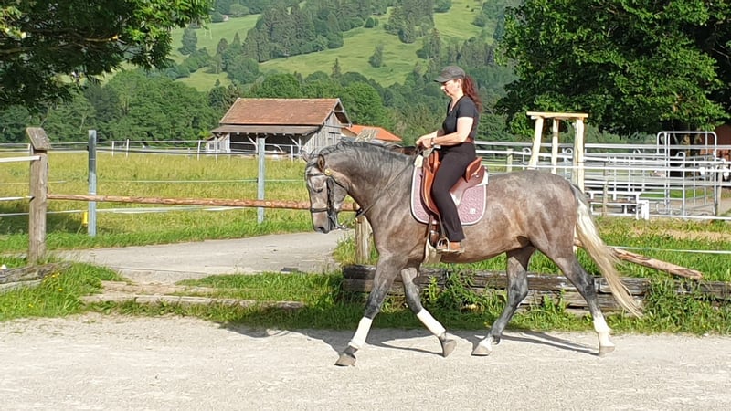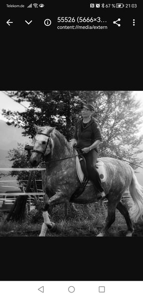 Avalon, 7 jähriger Reithengst, beide Eltern reine PREs, als Freizeitpferd eingetragen, weil ich niemals an einen Verkauf gedacht habe, bevor ich seine Mama verkauft habe. Avalon ist bei mir auf die Welt gekommen, sehr schonend nach klassischen Grundlagen vom Boden und unter dem Sattel von mir ausgebildet, ein Pferd voller Vertrauen in SEINEN Menschen, immer gewillt zu gefallen und dazuzulernen. Keinerlei Hengstmanieren im Umgang und unter dem Sattel. Ich wünsche mir für ihn einen Menschen der mit liebevoller Konsequenz und viel Zeit seine wirklich tollen Anlagen weiter fördert und ihm ein vertrauensvoller Partner ist, dem er sein Herz schenken und sich anlehnen darf. Bei wirklichem Interesse an diesem tollen Pferd beantworte ich alle weiteren Fragen sehr gerne persönlich. Auf den letzten Bildern sind Mama und Papa zu sehen