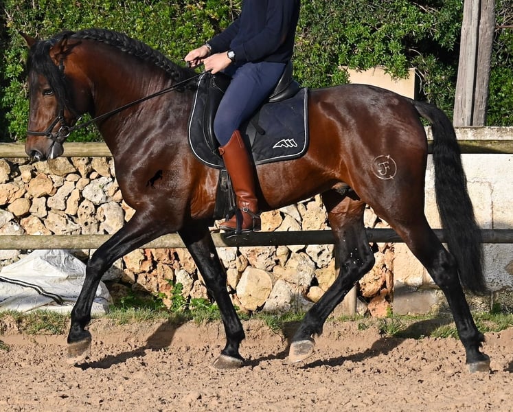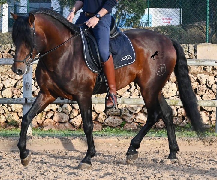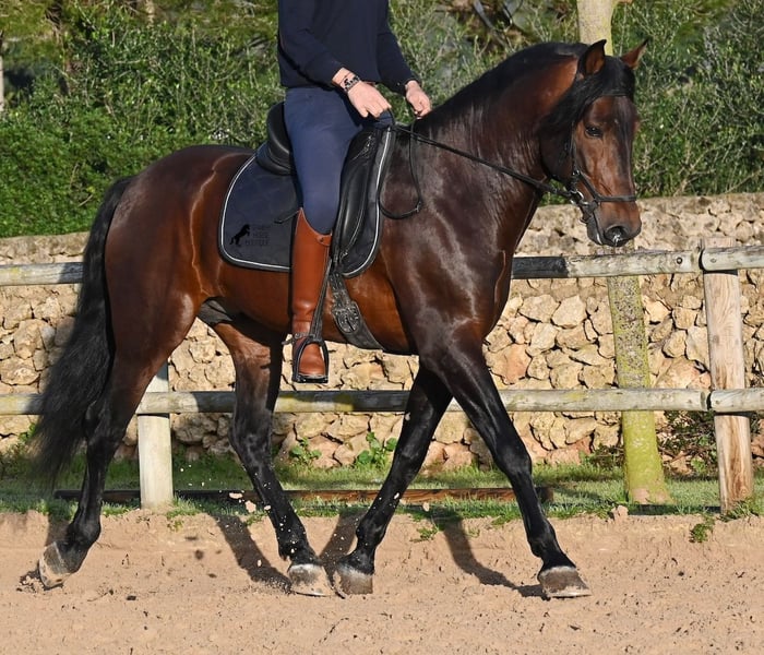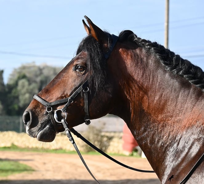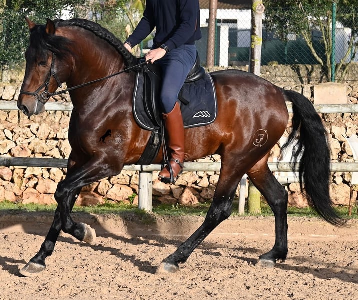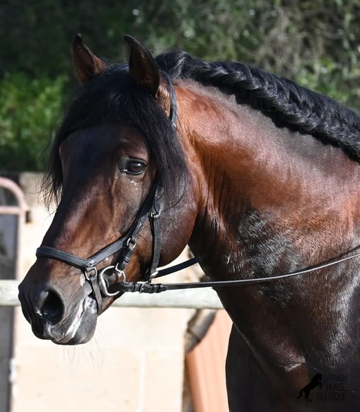 This 2019-born PRE stallion (Andalusian with official registration from ANCCE) is a stunning representative of his breed on many levels. His outward beauty is obvious, but his kind character, work ethic, and willingness to please also make him a truly lovely soul internally. He is incredibly well-behaved, both in handling and under saddle. Always attentive to do everything correctly and tirelessly eager to impress. His training is very solid; he masters lateral work in all gaits and is beautifully flexible and supple, making him also suitable for Working Equitation. He quickly differentiates between work and relaxation, smoothly transitioning from contact to extension and stretch within seconds. A very intelligent horse with potential for more, as he is currently only ridden twice a week by his trainer, yet remains enduring, calm, focused, and in good shape. He has already participated in a competition, so he is accustomed to being in new environments with other horses. He shows no stallion behavior and remains calm and focused even when riding with other horses in the arena. Trail rides have been less frequent, but he is familiar with group and solo rides as well. His pedigree is also appealing to PRE connoisseurs, as he is paternal line exclusively from Yeguada Militar (Cartujano) and predominantly Escalera on the maternal side. He currently measures 16.1 hh and may still grow a little taller. He is licensed but has not been used for breeding. For those who cannot keep a stallion, castration on-site is of course an option. His current location is Menorca. Videos and pedigree details are available upon request. I am happy to organize an ultrasound, training, castration, transport, or even your journey if you wish to come see him in person. Further details can be found on my website or in a personal conversation. Greetings from Spain